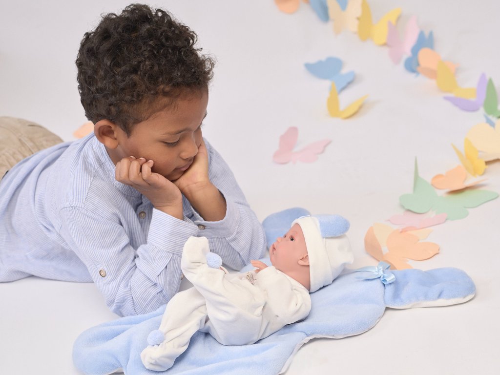 Llorens 63597 NEW BORN CHLAPEČEK realistická panenka miminko s celovinylovým tělem 35 cm