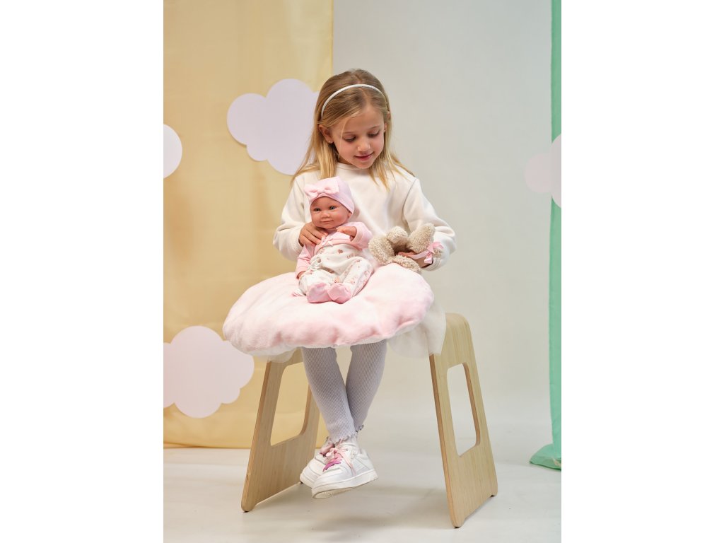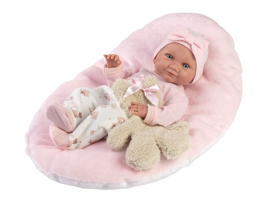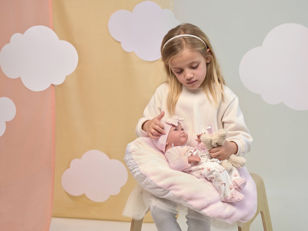 Miminko bez zvuku s vinylovým tělem s možností koupání, na kterém je zachycen doslova každý detail dětského tělíčka včetně roztomilých miminkovských faldíků a pohlaví. Miminko lze koupat, ale je potřeba dát pozor, aby se nenamočily řasy. Odlepené řasy nejsou pak důvodem k reklamaci. Ruce a nohy jsou k tělu přichycené kloubem. Miminko je polohovací a může i sedět. Velikost 40 cm. Ručně vyrobeno ve Španělsku, baleno v dárkové krabici. Doporučený věk od 3 let. K miminku je možné dokoupit další originální oblečení z nabídky Llorens pro miminka NEW BORN velikosti 40-42 cm.