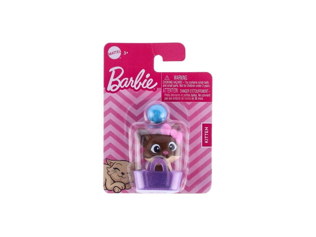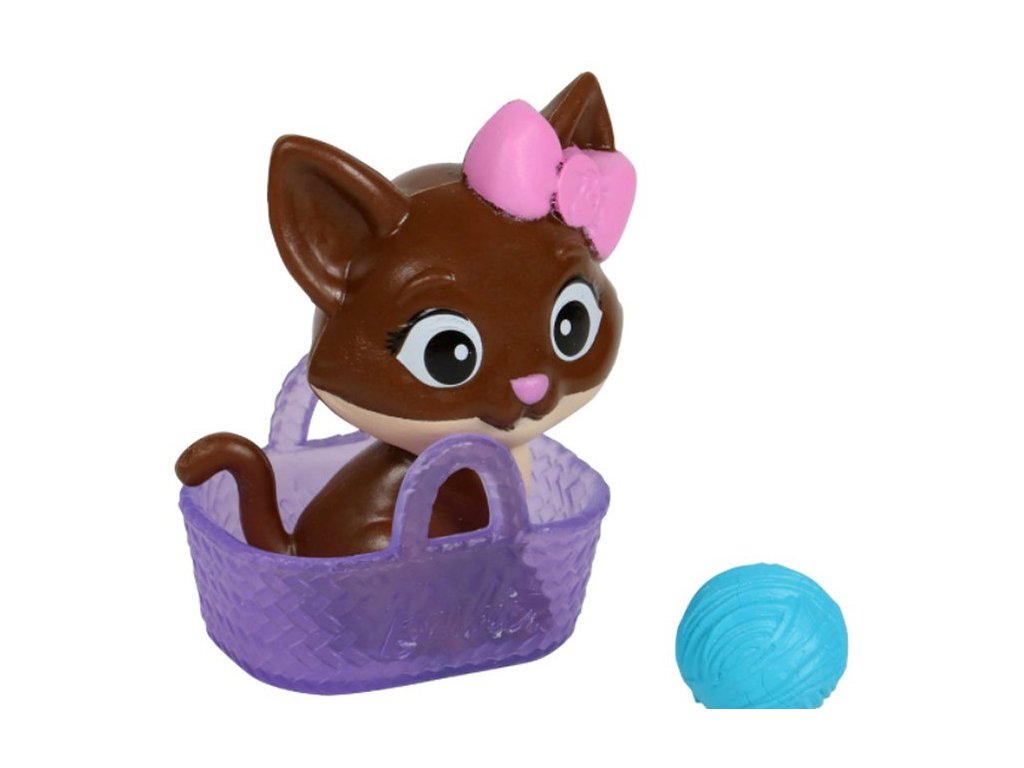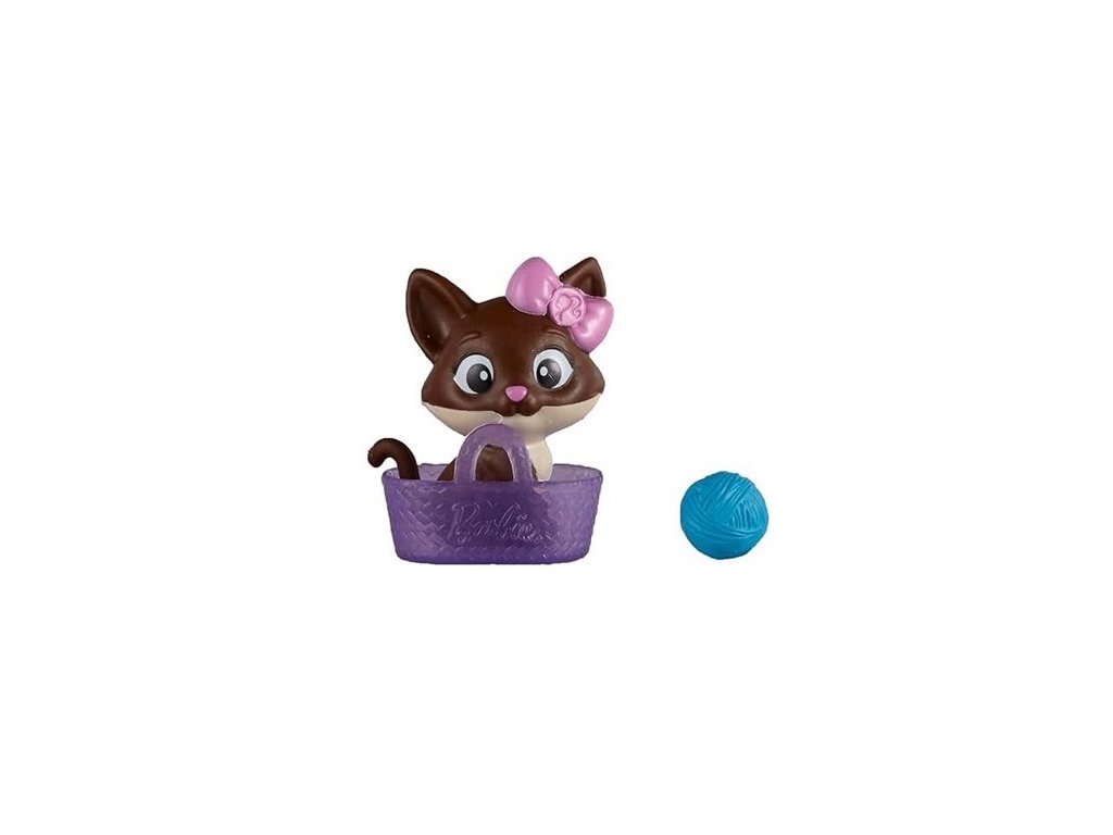 Mattel Barbie figurky mazlíčků 8x11,5 cm, balení obsahuje úžasnou figurku kočičky v košíčku a klubíčko, krásná originální zvířátka, lze použít jako doplněk pro panenky Barbie nebo sbírat jako samostatné figurky