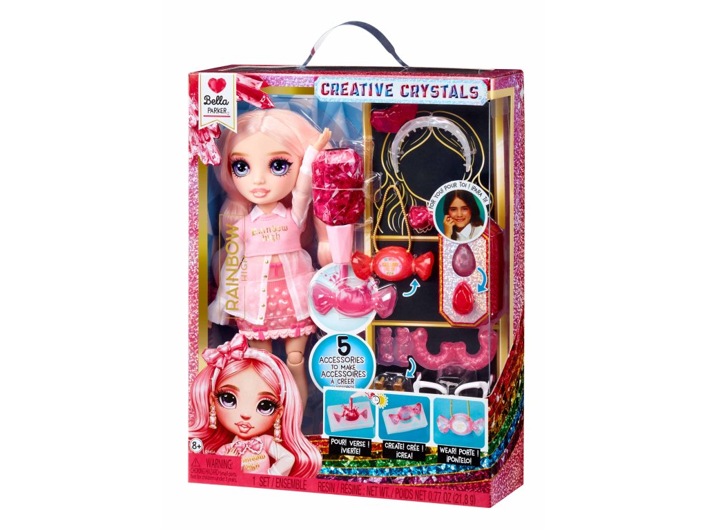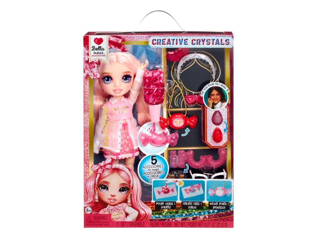 Tato panenka je pro všechny, kteří chtějí kombinovat kreativitu s nejnovějšími trendy v módě. Vytvoř více než 5 krystalových doplňků pro svoji panenku pomocí pryskyřice a formiček, které jsou součástí balení. Pro sebe můžeš vyrobit prsten. V sérii můžeš sesbírat 4 oblíbené a 1 úplně novou panenku.