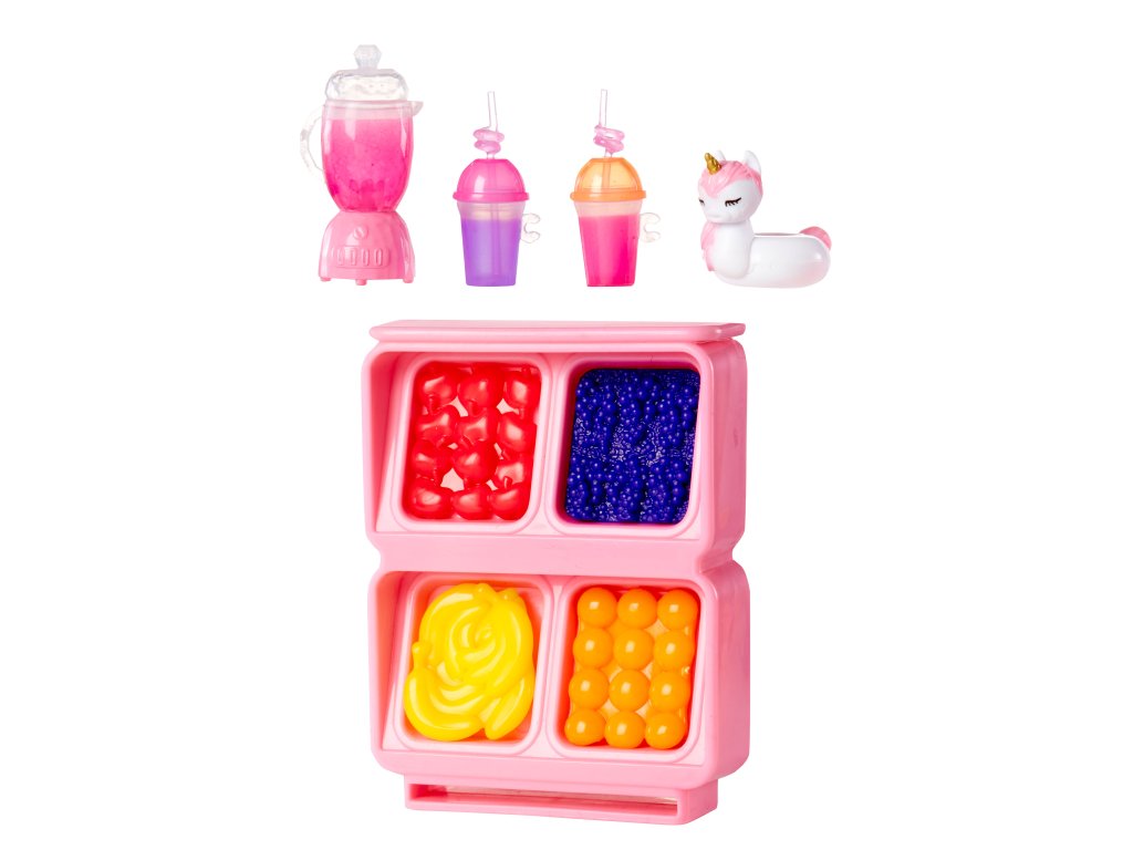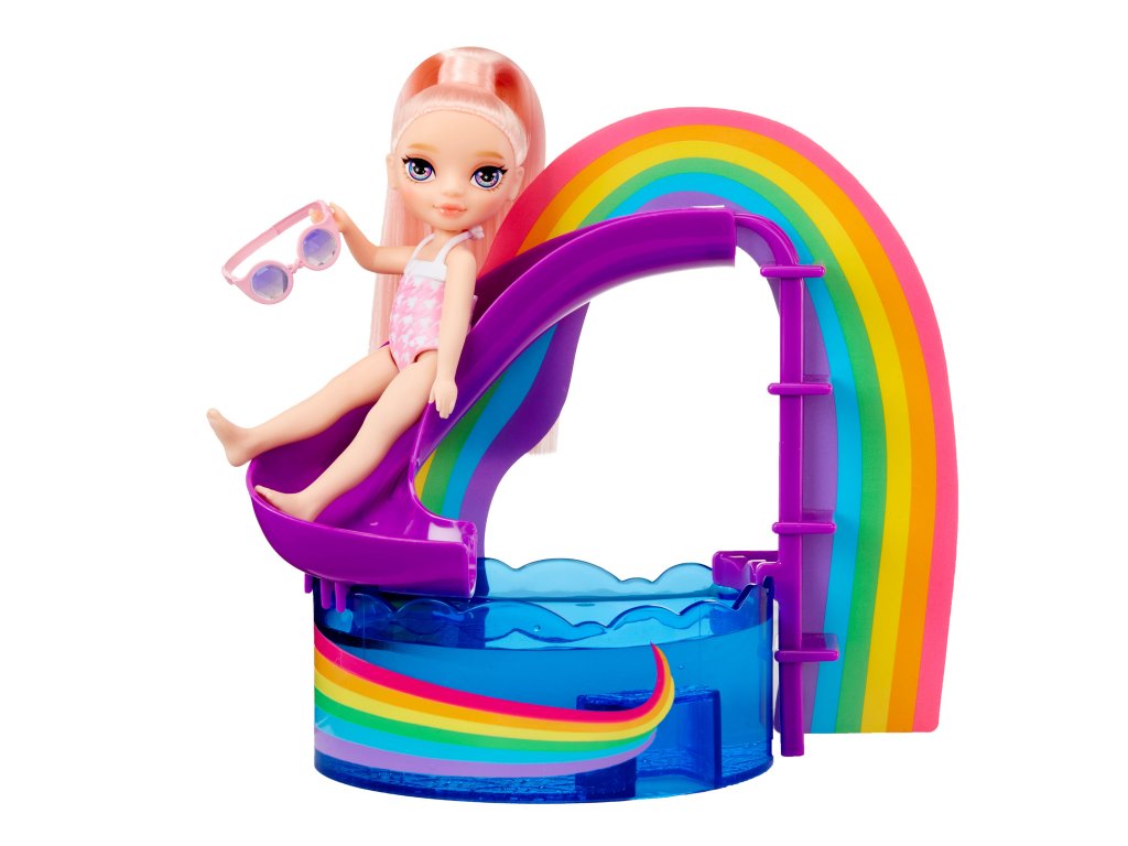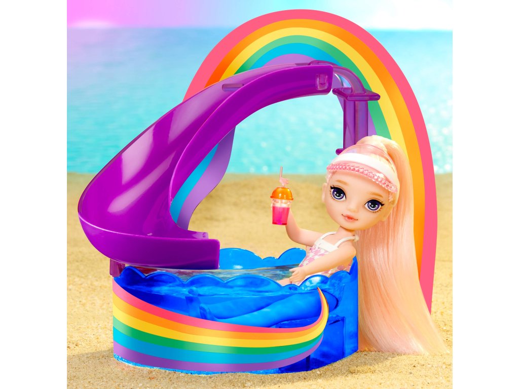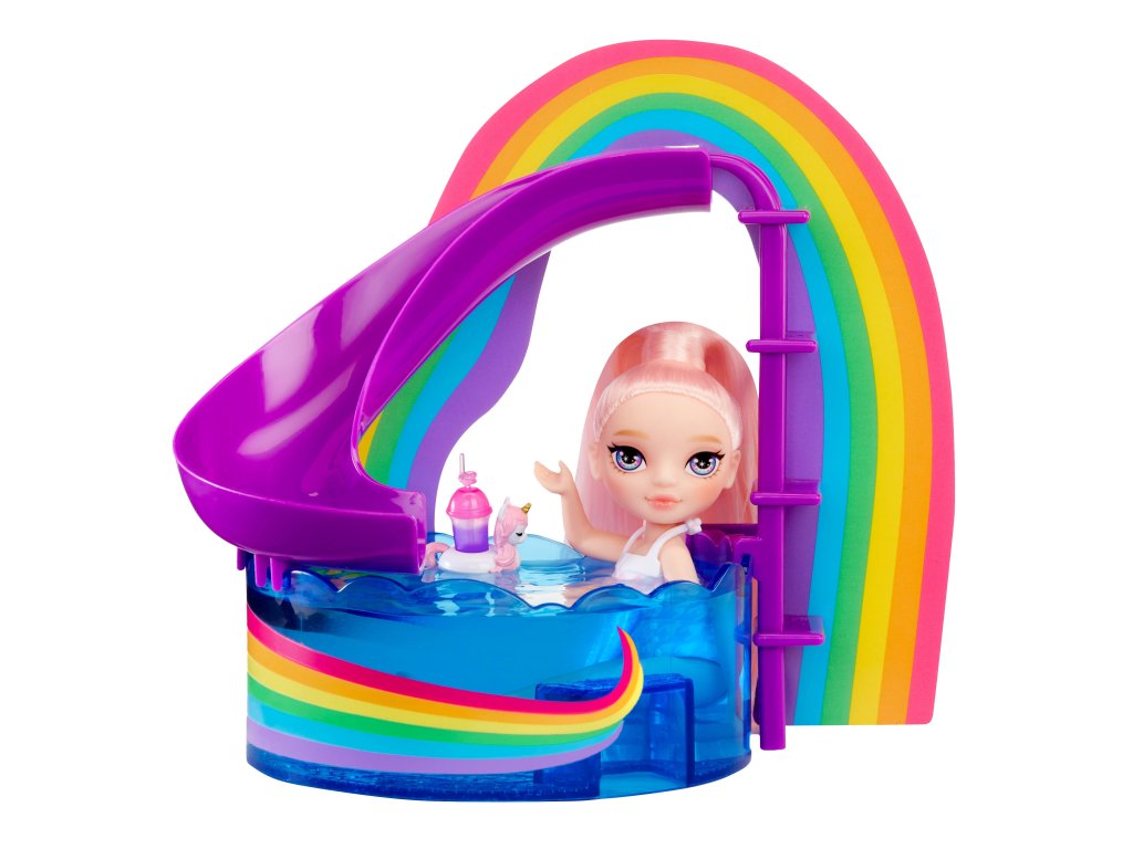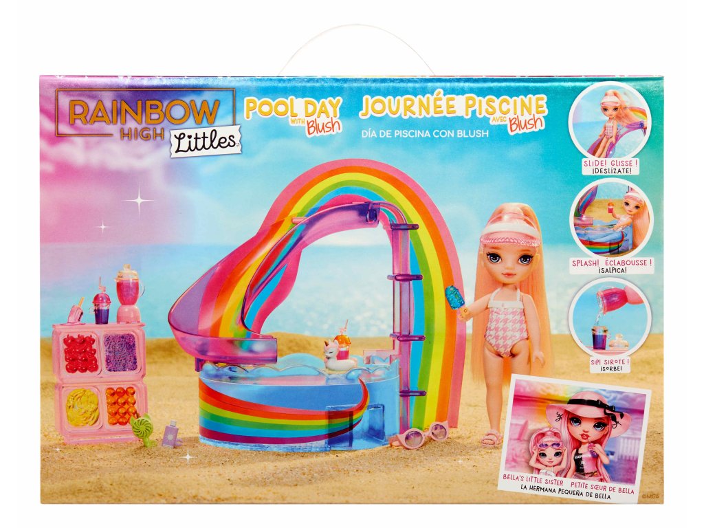 Objev kouzelný svět s herní sadou s malou sestřičkou. Čeká na tebe úžasná panenka velikosti 15 cm a její bazén. Do bazénu vede duhová skluzavka. U smoothie stánku najdeš mixér, ovoce, šálky a spoustu dalších doplňků, díky kterým si užiješ nekonečnou hru. U bazénu najdeš plováky, slunečník a další zábavné věci.A nejlepší na tom je, že si svou oblíbenou sadu můžeš vzít všude s sebou!Obsah balení:Exkluzivní Malá sestřička v outfituBazén s duhovou skluzavkou obsahuje smoothie stánek s mixérem, ovoce, kelímky a spoustu doplňků pro den strávený u bazénu.