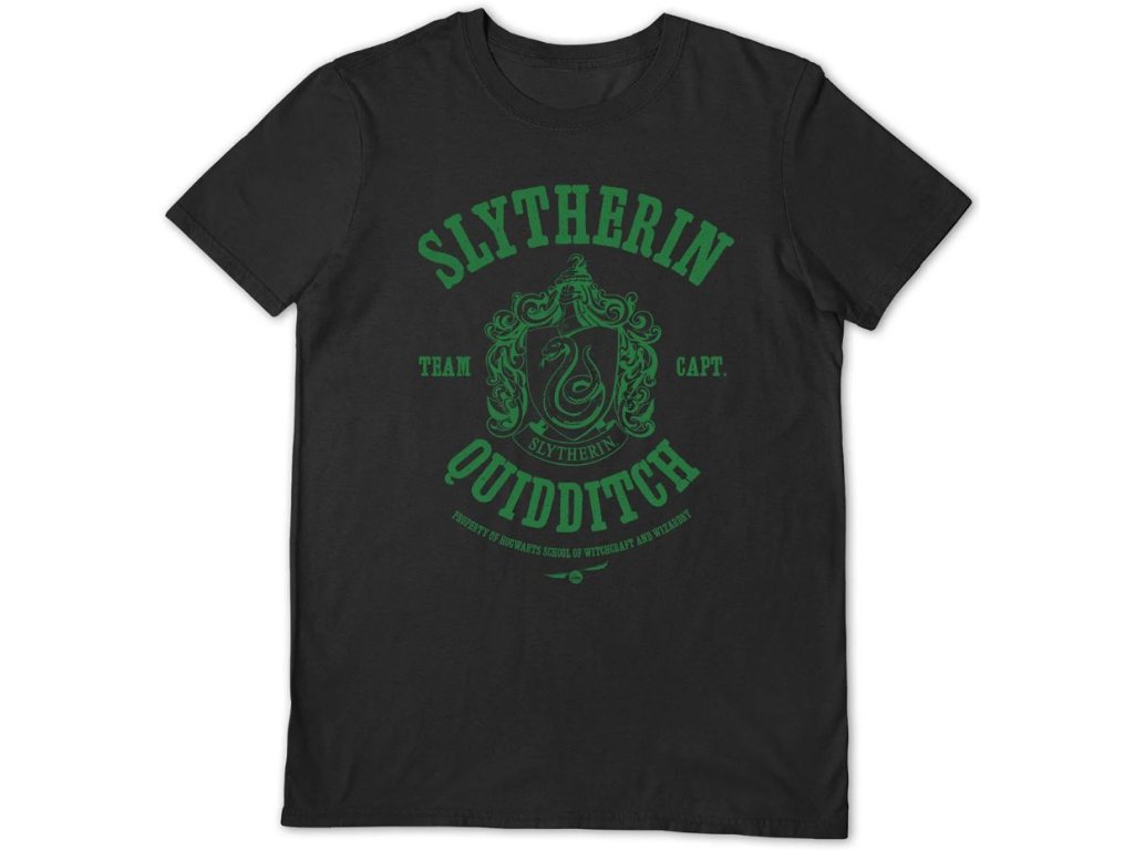 Set obsahuje pánské tričko černé barvy vyrobené v grafice koleje Slytherin (Zmijozel) a přívěsek s logem Hogwarts (Bradavice), vše s licencí Harry Potter.