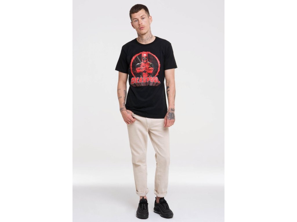 Pánské černé tričko s krátkým rukávem s logem a motivem Deadpool.