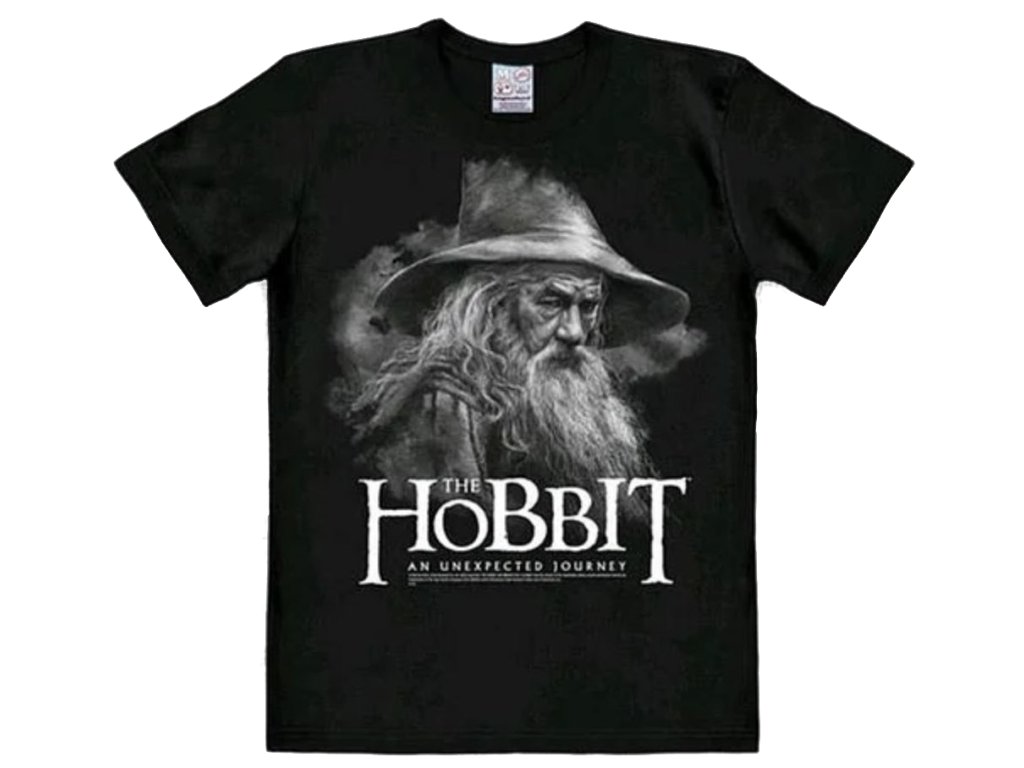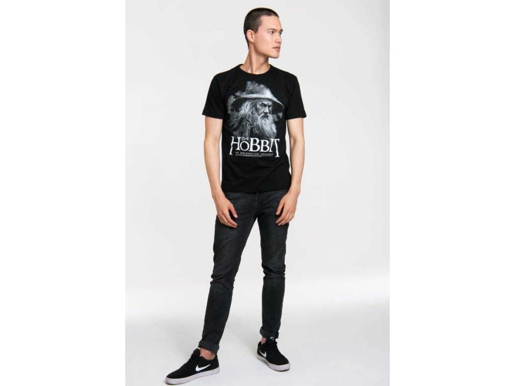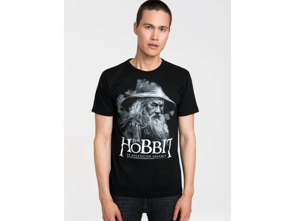 Černé pánské tričko s grafikou z filmu The Hobbit a postavou Gandalfa.