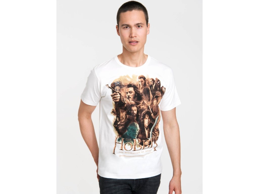 Oficiální tričko z katalogu merchandise produktů s logem, grafikou a fotografiemi z filmu The Hobbit.
