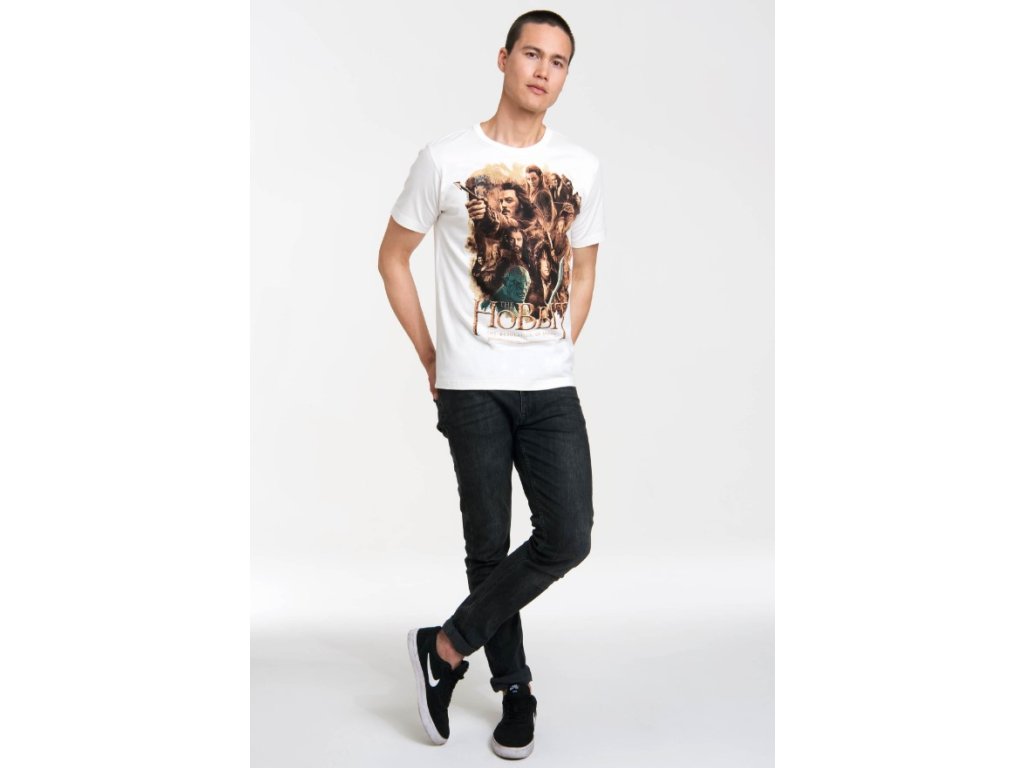 Oficiální tričko z katalogu merchandise produktů s logem, grafikou a fotografiemi z filmu The Hobbit.