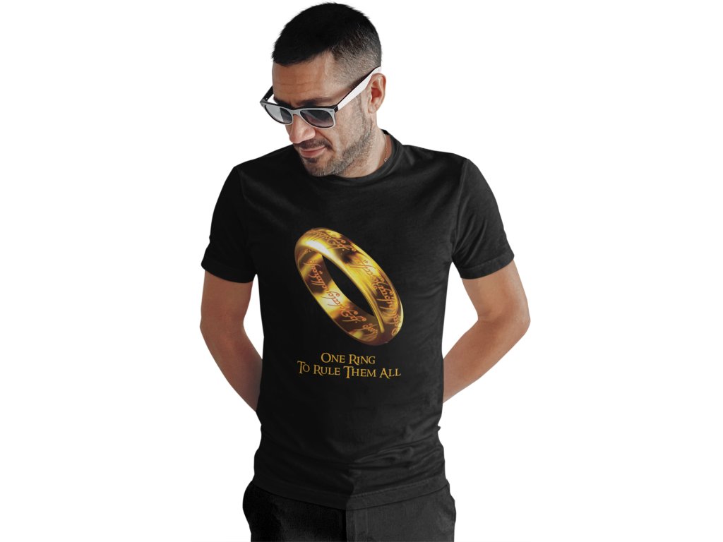 Černé pánské tričko s krátkým rukávem a motivem One Ring To Rule Them All.