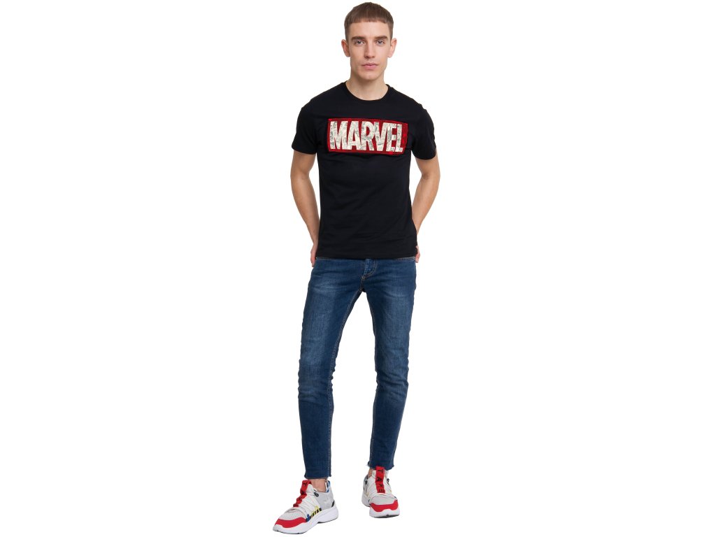Atraktivní černé pánské tričko s krátkým rukávem a grafikou loga Marvel.