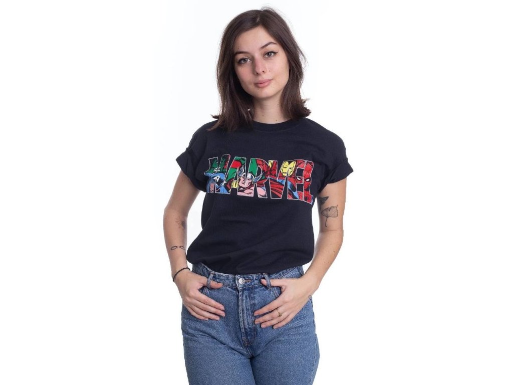 Černé atraktivní pánské tričko s krátkým rukávem a grafikou Loga Character Infill. Tričko je vhodné pro všechny větší i menší fanoušky superhrdinů Marvel.