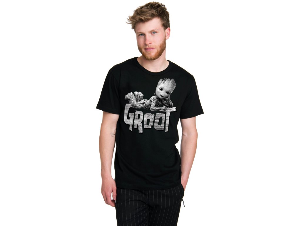 Černé pánské tričko s krátkým rukávem vyvedené v motivu postavy jménem Groot.