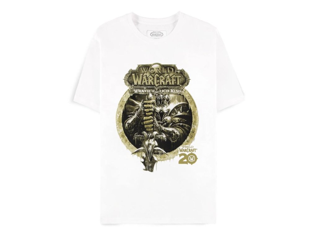 S tímto tričkem World of Warcraft navrženým k 20. výročí hry přiveďte do svého obchodu hněv Krále Lichů. Toto bílé tričko ze 100% bavlny s výrazným potiskem Arthase Menethila v jeho legendární zbroji ve zlatém odstínu je výjimečné pro každého fanouška Warcraftu. Rozšíření Wrath of the Lich King zůstává jedním z nejoblíbenějších v historii WoW, takže toto tričko musí mít jak sběratelé, tak hráči.