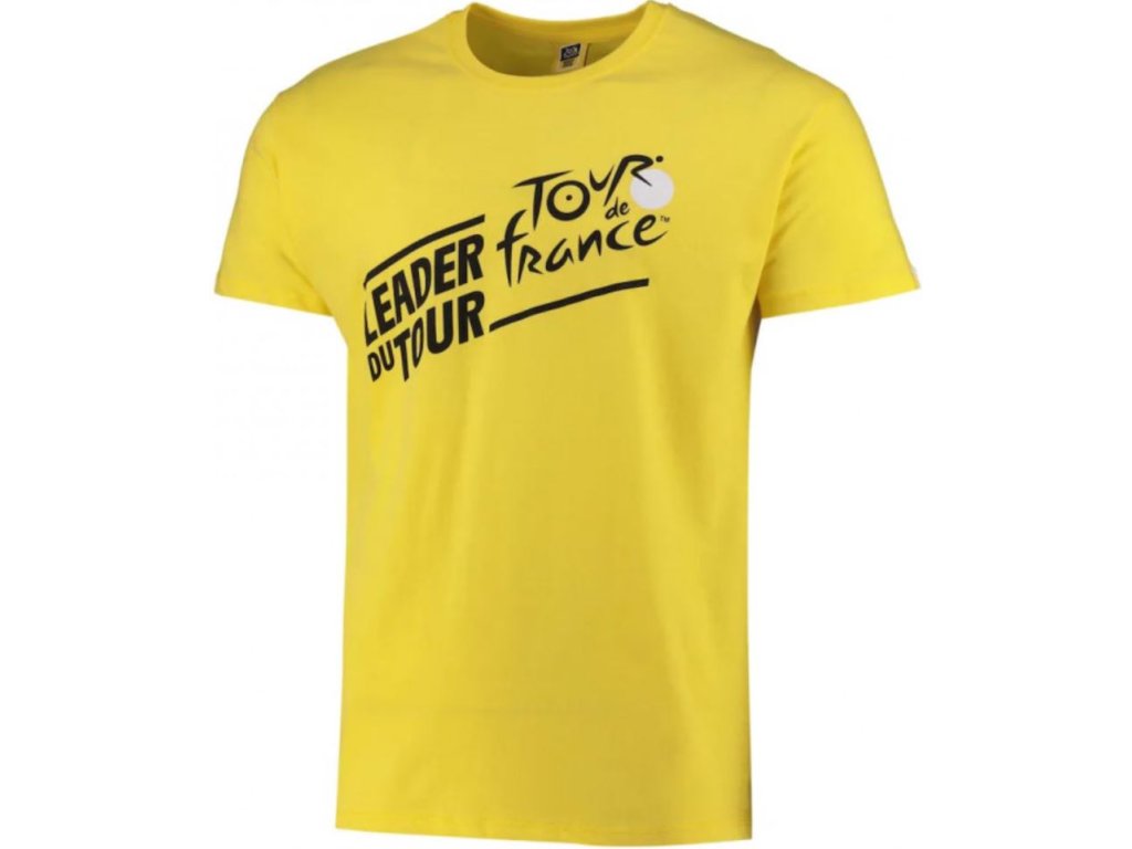 Atraktivní žluté triko s krátkým rukávem a nápisem Leader of race (Vedoucí jezdec závodu) z motivu světoznámého závodu pořádaného od roku 1903 ve Francii a končícího v Paříži: Tour de France.