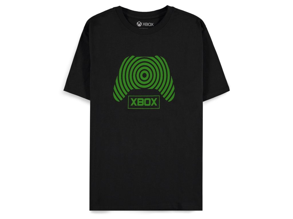 Pánské černé tričko s krátkým rukávem, zeleným motivem Controller a logem Xbox.