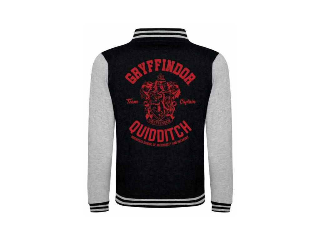 Atraktivní černá bunda s šedými rukávy a grafickým potiskem Gryffindor Quidditch (Nebelvírský Famfrpál). Mikina je vhodná pro všechny fanoušky Harryho Pottera.