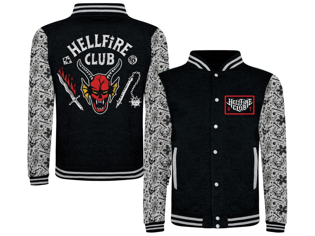 Atraktivní černá bunda s grafikou loga "Hellfire Club (společnosti studentů Hawkins High v čele s Eddiem Munsonem)" z oblíbeného seriálu Stranger Things: Season 4. Bunda je vhodná pro všechny fanoušky a hráče Dungeons & Dragons .
