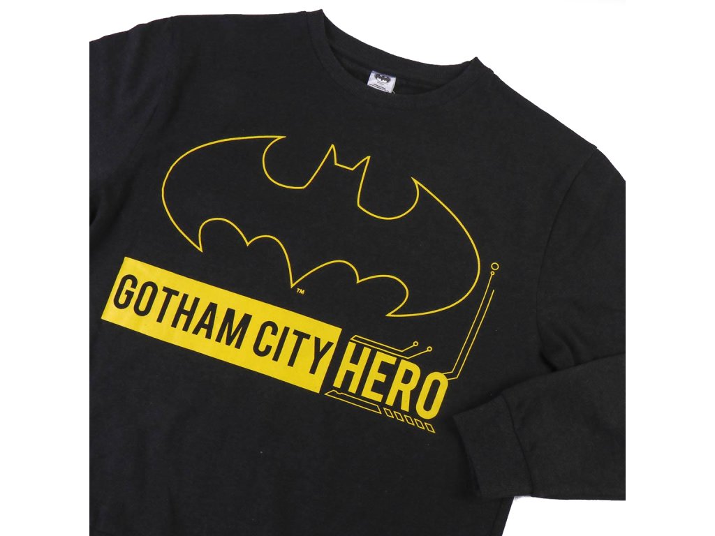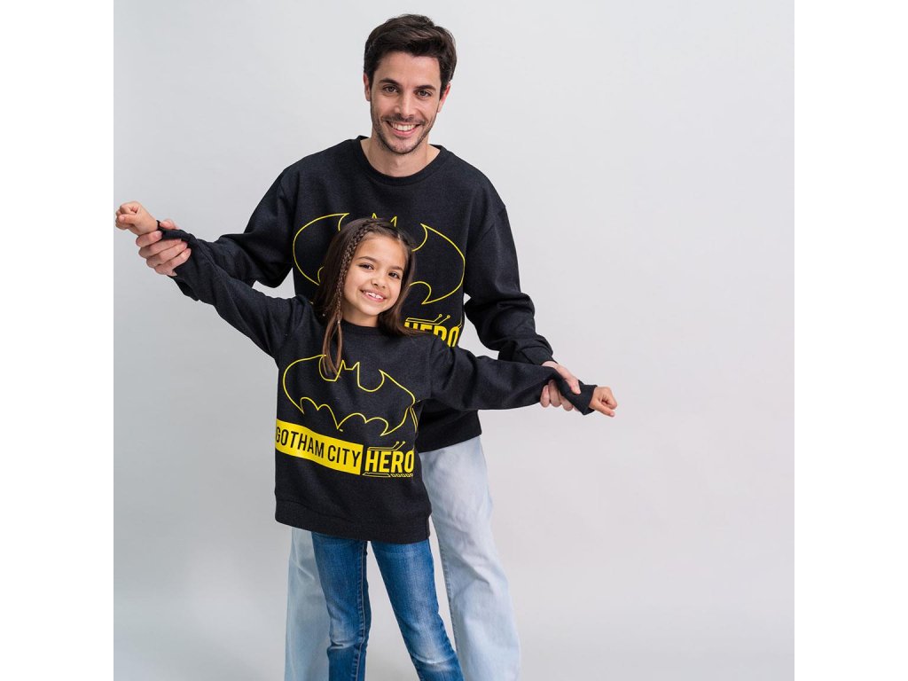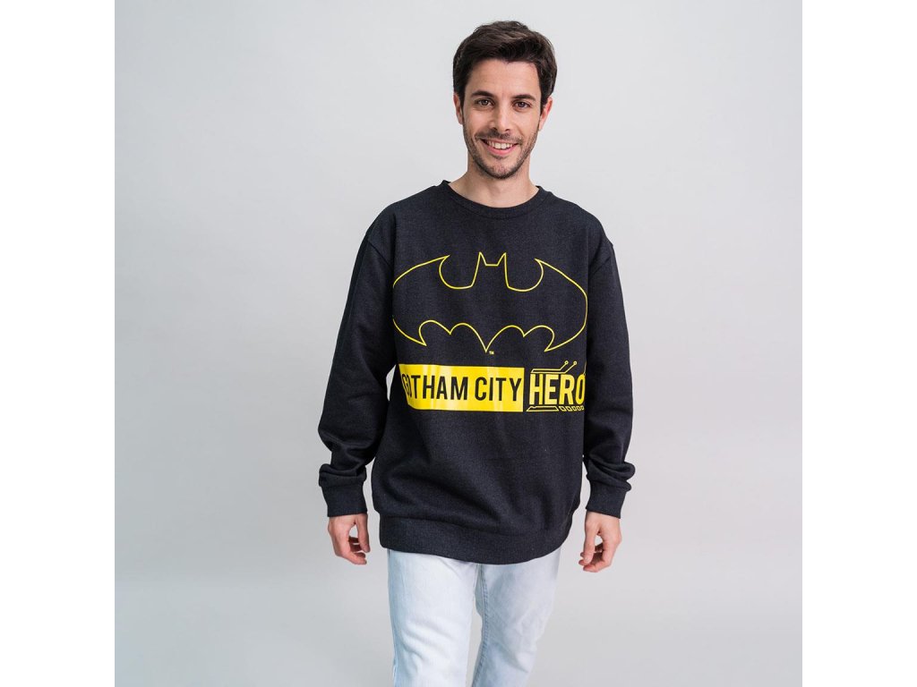 Černá dětská mikina bez kapuce s grafikou žlutého symbolu netopýra superhrdiny Batmana a nápisem: Gotham City Hero'' (Hrdina města Gotham). Mikina je vhodným dárkem pro všechny superhrdiny, kteří mají odvahu na záchranu města. Mikina je dělána i v dětské velikosti, tudíž je skvělým doplňkem všech superhrdinských rodin!