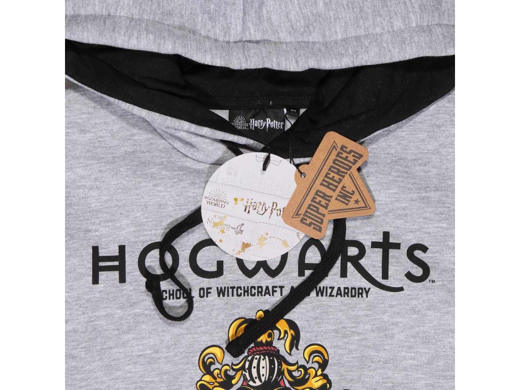 Šedá atraktivní mikina s kapucí na motivy Hogwarts Crest (Bradavické koleje) známé knižní a filmové ságy Harry Potter.