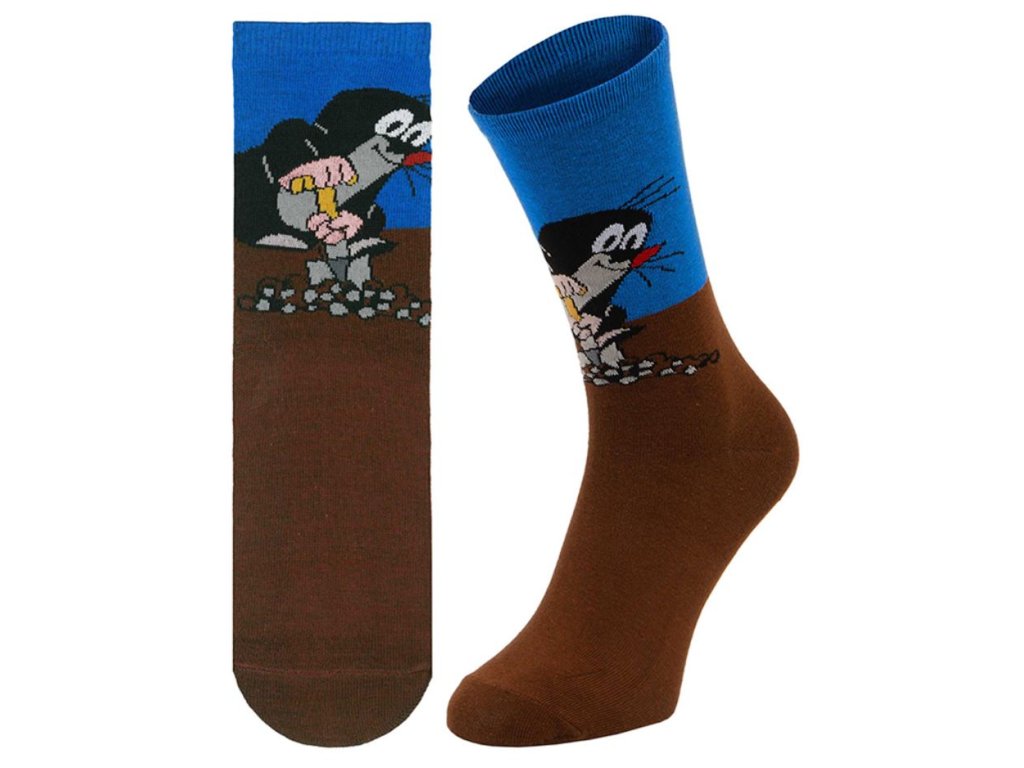 Pánské modro-hnědé ponožky s grafikou seriálové postavy Krtečka, který kope. Ponožky jsou vhodným dárkem pro každého menšího i většího fanouška.