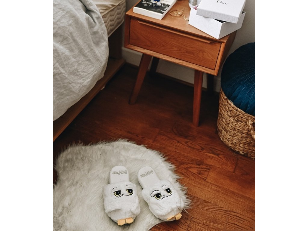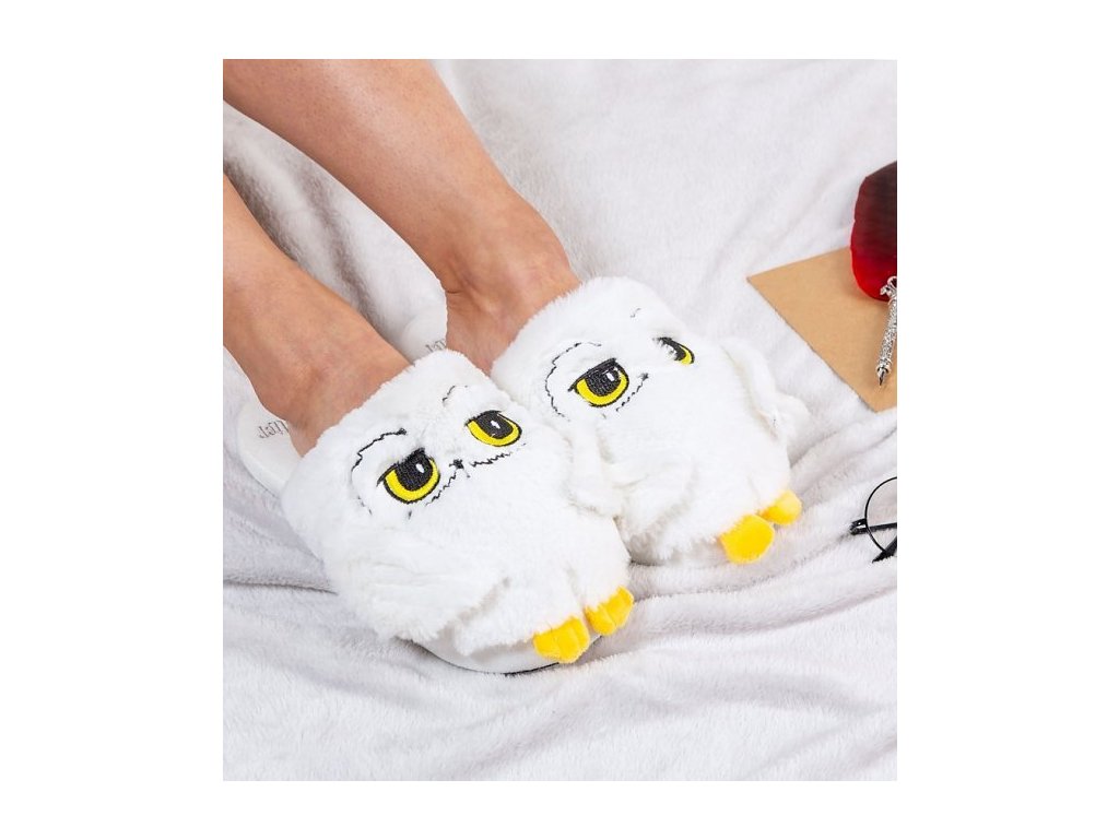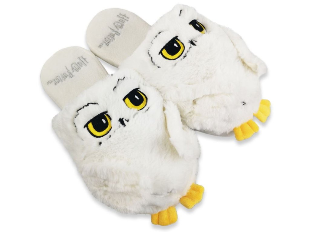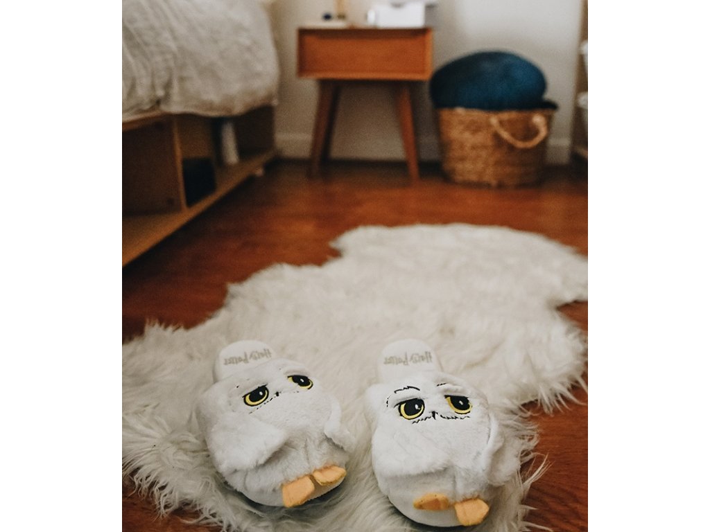 Moderní bílé trepky vyvedené ve tvaru sovy Hedwigy. Tyto pantofle poskytují maximální pohodlí a jsou vhodné pro všechny fanoušky filmu Harry Potter.