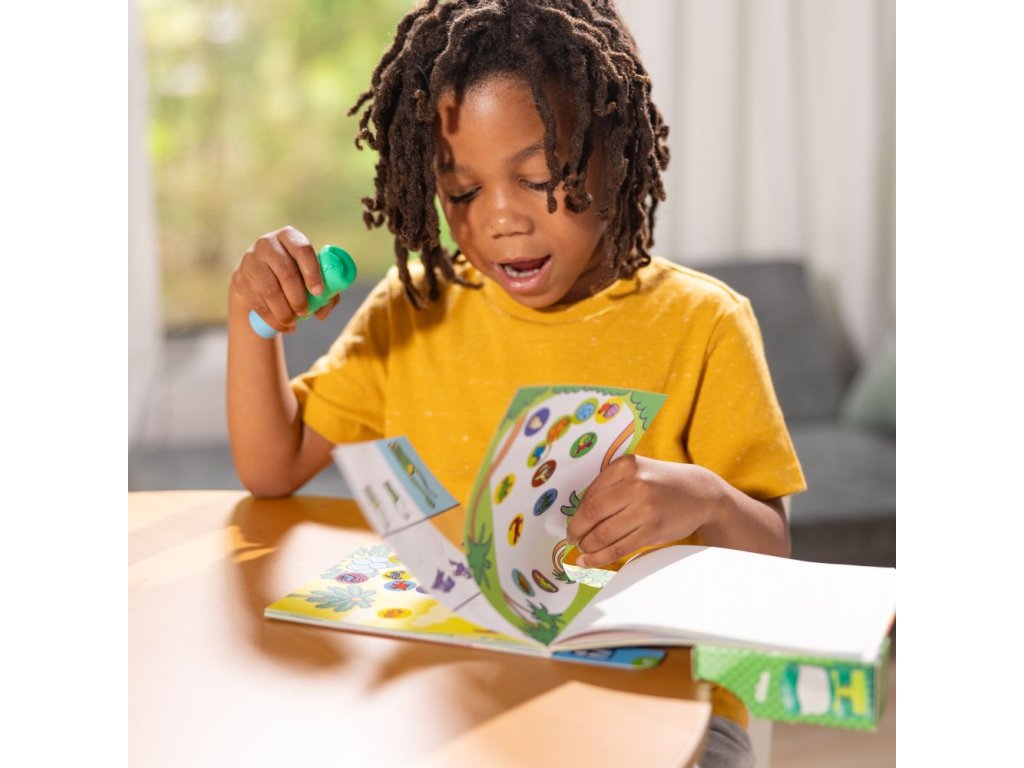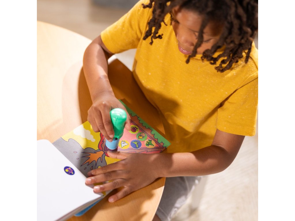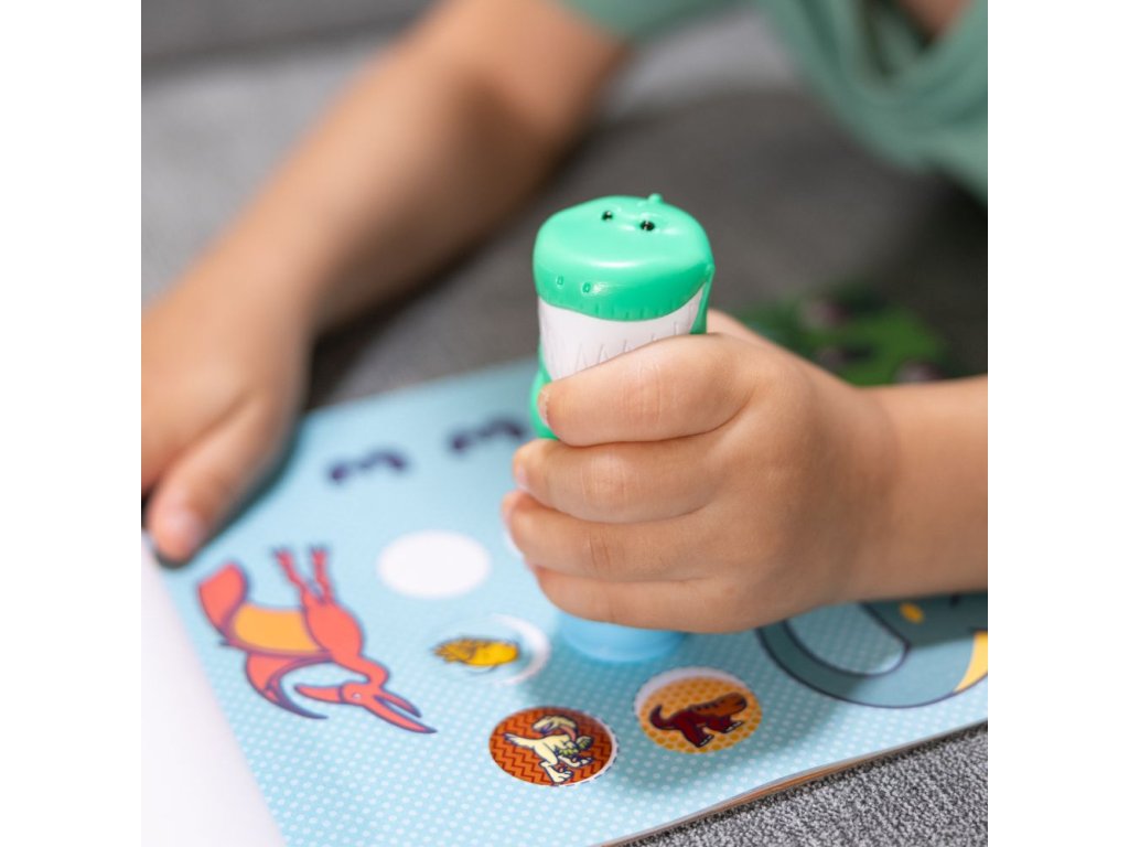 Kouzelné tuby plné samolepek, které sa dají snadno odstraňovat. V archu s obrázky jsou prázdná místa pro samolepky, kam je děti ze zásobníku snadno nalepí. Je to snadné a velmi zábavné. Položka obsahuje téma Dinosauři.
