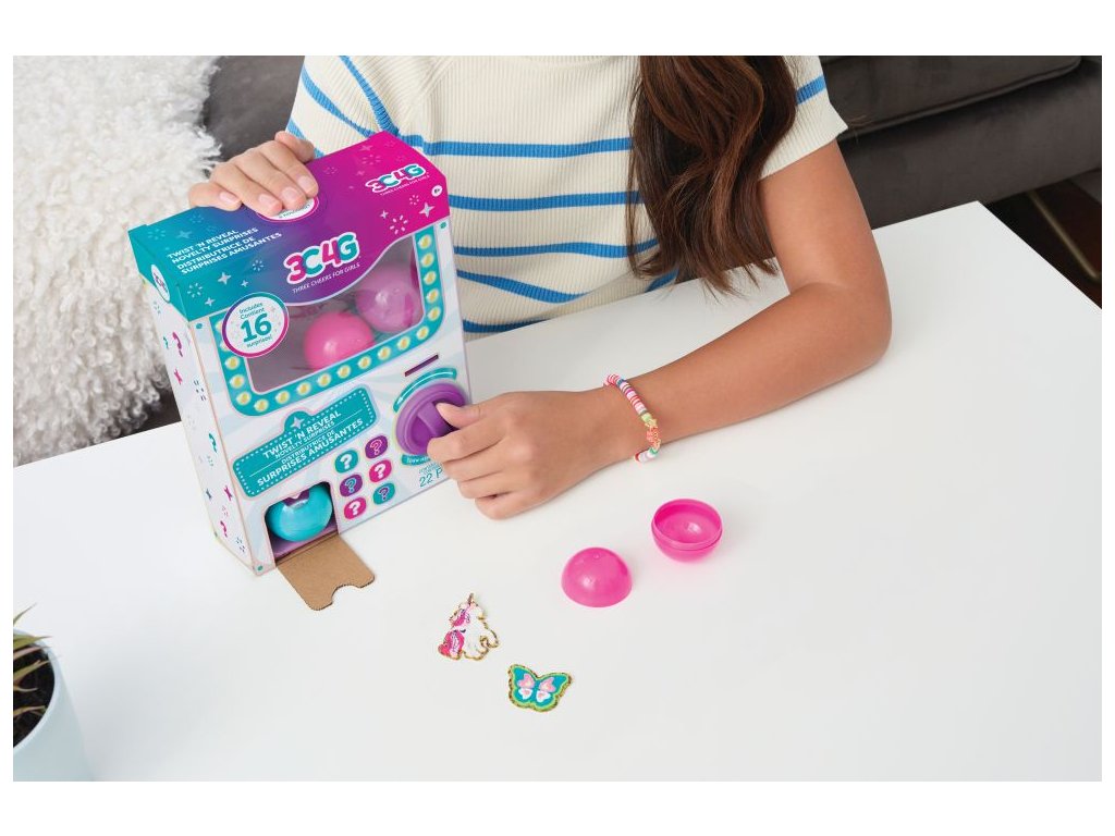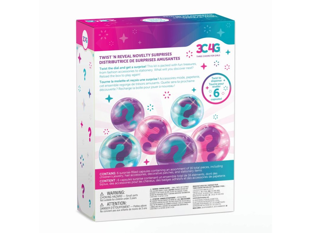 Otočte ciferníkem a získejte překvapení – co najdete? Tato vzrušující sada je nabitá zábavným sortimentem pokladů, od módních doplňků po barevné psací potřeby, takže je perfektní volbou pro stylové doplnění. Se 6 kapslemi naplněnými 16 překvapeními nelze říci, co bude objeveno příště. Pokračujte ve hře a zjistěte to! Jakmile děti odhalí všechny dobroty, mohou znovu nabít kapsle a hrát si znovu a znovu, aby vzrušení neustávalo. Ať už na hraní s přáteli nebo sólo, tato sada je skvělým dárkem k svátku, narozeninám nebo jen tak! Ideální pro věk 8+.