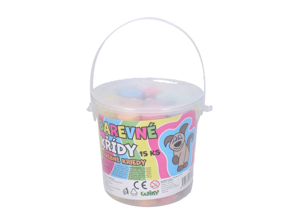Kulaté barevné chodníkové křídy v kyblíku