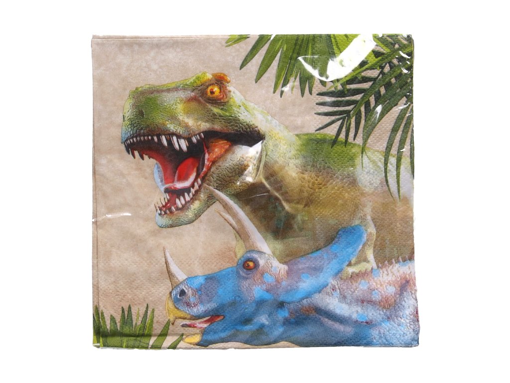 Papírové párty ubrousky DINO o velikosti 33x33 cm.