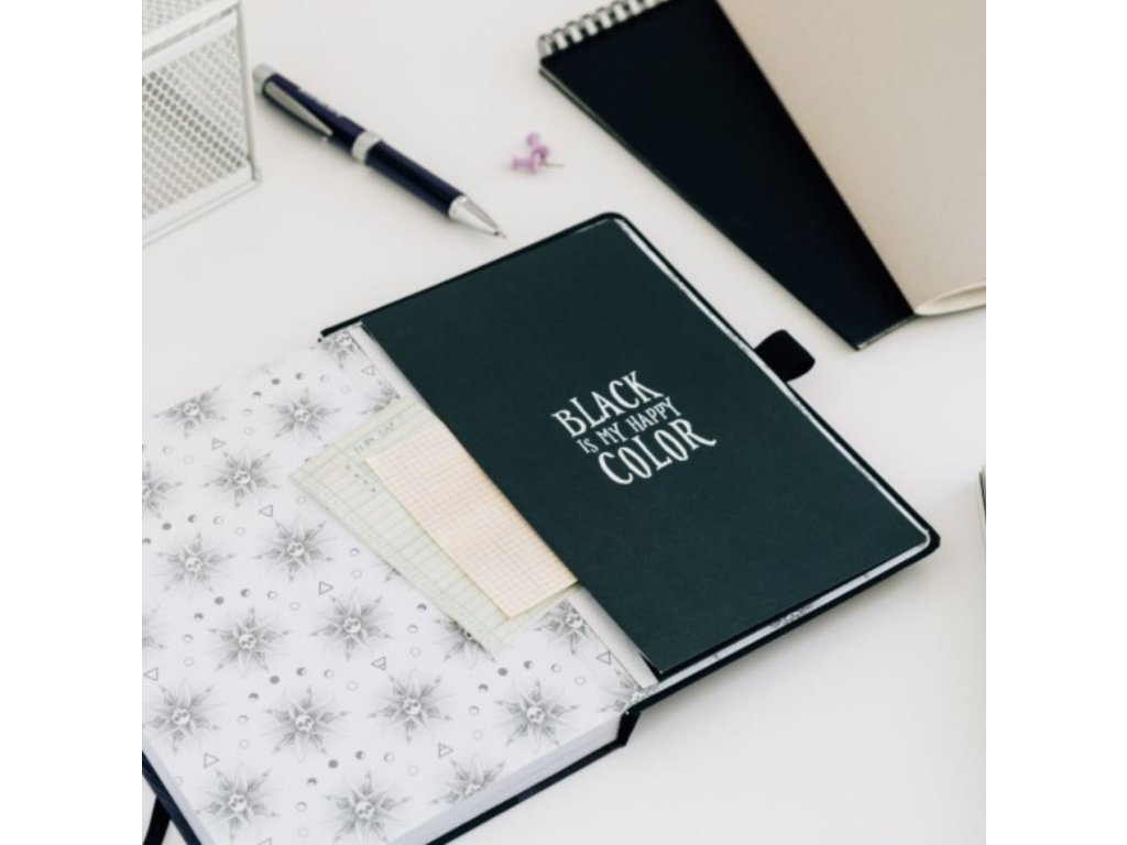 Zápisník ve formátu A5 v pevné vazbě s promítací propiskou. Blok vyniká měkkým matným laminovaným krytem, personalizovaným vnitřkem typu linek, zaoblenými rohy, lepenou vazbou, stuhou na záložku, kapsou a zapínáním na gumičku. Obsahuje 96 listů (192 stran). Součástí je také pero, které promítá obraz deštníku, po stisknutí tlačítka umístěného na jeho těle a které funguje se 4 bateriemi, které jsou přímo v propisce (součástí balení).