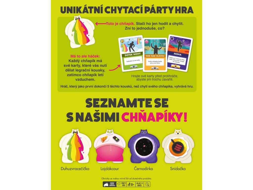 Až na vás přijde řada, vyhoďte svého chňapíka do vzduchu a chyťte ho, zároveň v tomto jednom hodu proveďte akce na VŠECH kartách akcí, co před vámi leží. Hru vyhrajete, pokud se vám podaří hodit a chytit chňapíka a splnit 5 karet akcí.