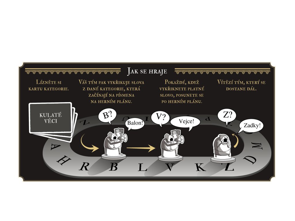 Ve zkratce - váš tým bude vykřikovat slova, která začínají na konkrétní písmeno a zapadají do určité kategorie. Počáteční písmena se změní pokaždé, když zakřičíte správnou odpověď, a pokud váš tým vymyslí víc slov než ten druhý, získáte body!