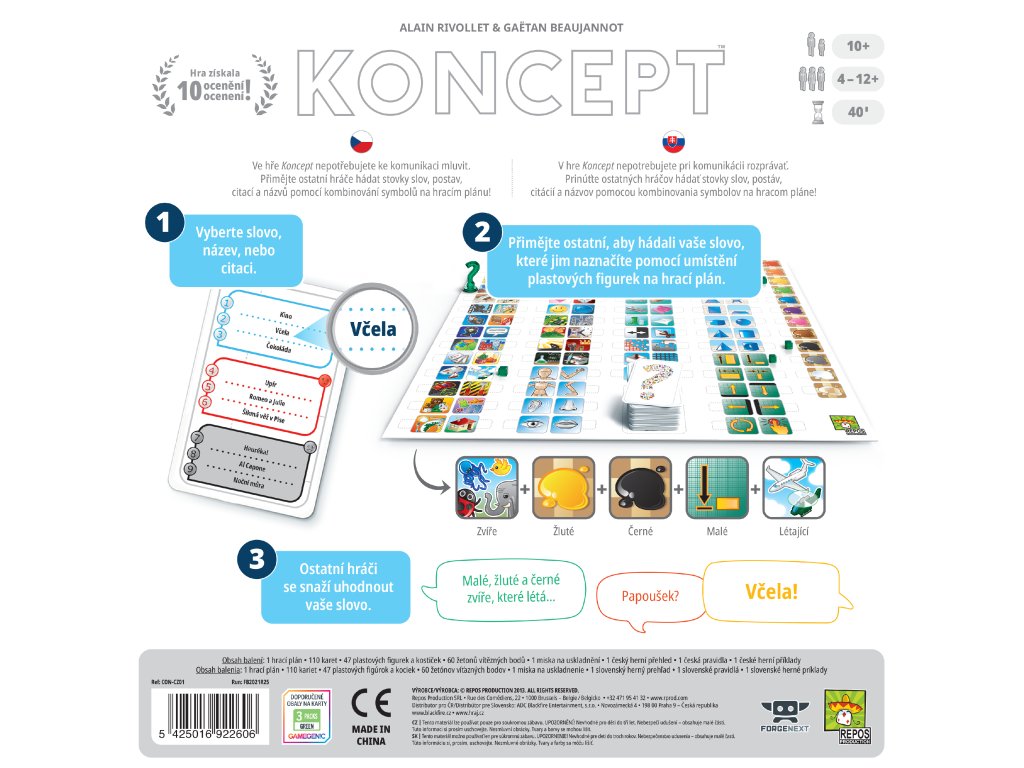 Jaké je to komunikovat beze slov? A kolik symbolů člověk potřebuje k vyjádření jedné myšlenky? To si mohou hráči vyzkoušet pomocí hry Koncept. Hry, kde neexistují slova a kde vládnou obrázky a indicie