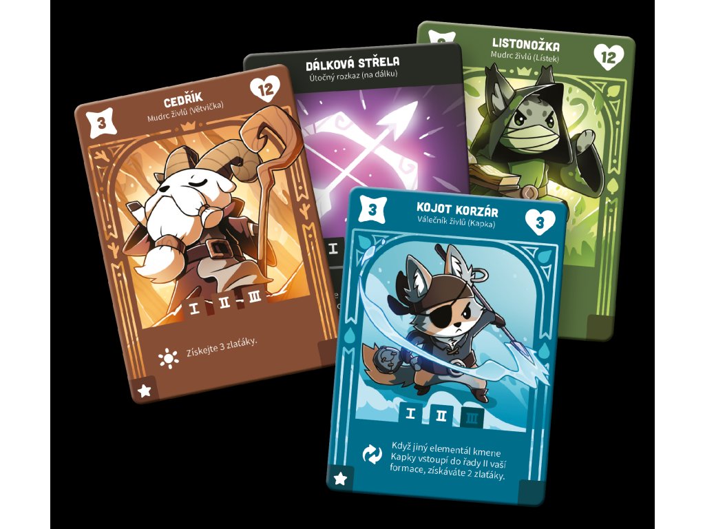 Podmaňte si magii pralesa a utkejte se se soupeřícími mudrci ve hře od tvůrců Chlupatých zabijáků a Čarostínů, zaměřené na budování baličku karet. Povolávejte válečníky živlů z kmenů Větvičky, Lístku, Kapky a Oblázku a prokažte svou zručnost v boji. Během bitvy budete postupovat na vyšší úrovně a získávat přístup k výjimečným schopnostem a mocným šampionům živlů. Budete to vy, kdo zůstane poslední stát pevně na nohou coby vítěz, až se usadí prach z bitvy?