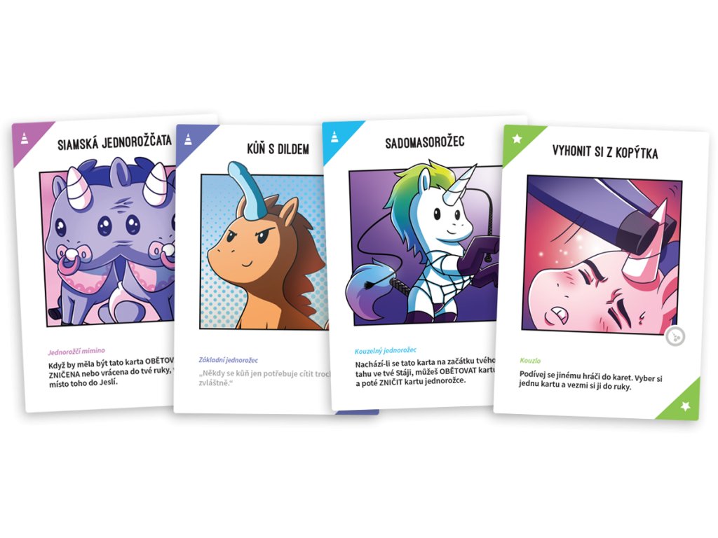 Labilní jednorožci je strategická karetní hra o dvou oblíbených věcech: jednorožcích a ničení a tohle je její přisprostlá edice, ve které nesmí chybět pořádný kůň s dildem a ten rozhodně patří k těm roztomilejším tvorům! Začínáte s malým jednorožčetem ve vaší Stáji. Hodně "kjůůůt"... Popravdě? Tyhle jednorožčata už zas tak hezká nejsou, ale někdo se jich ujmout musí!