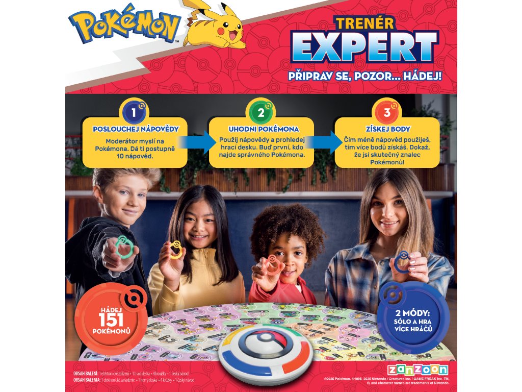 Buďte první, kdo uhodne správného Pokémona. Pro odpověď stiskněte svou barvu na elektronickém zařízení a umístěte svůj kroužek na Pokémona na desce. Jakmile všichni hráči odpoví nebo bude poskytnuto všech 10 nápověd, moderátor oznámí správného Pokémona. Pokud jste odpověděli správně, stiskněte svou barvu. Pokud nikdo neuhodl správně, stiskněte tlačítko Poké Ball. Čím méně nápověd použijete, tím více bodů získáte.