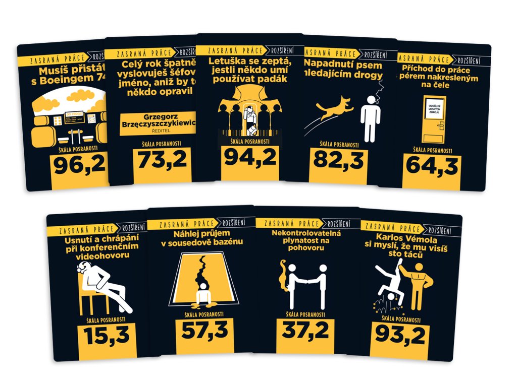 Na těchto kartičkách si přečtete fakt strašný věci, který pak budete hodnotit podle toho, jak moc jsou na hovno. Je poštípání mravenci LEPŠÍ, nebo HORŠÍ než oznámení o vystěhování?
