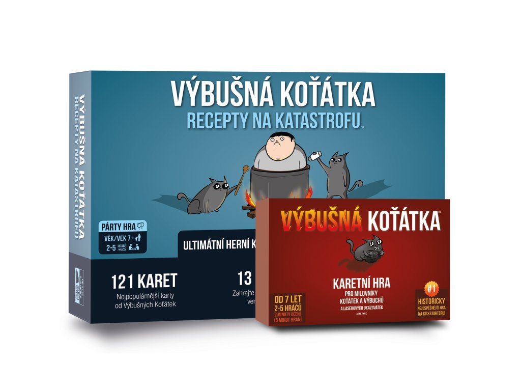 Recepty na katastrofu přinášejí vše, co začátečníci pro svou první hru Výbušných koťátek potřebují. Zkušenějším hráčům pak nabízejí výběr těch nejlepších karet z rozšíření hry spolu s brožurami receptů, díky kterým otevřete více jak tucet nových herních variant.