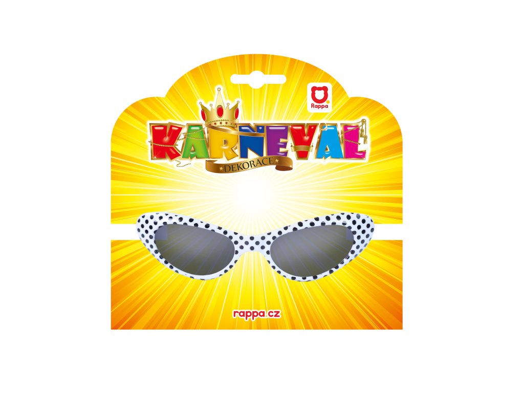 Elegantní karnevalové retro brýle v bílé barvě s černými puntíky. S tímto doplňkem na očích budete na párty za hvězdu!