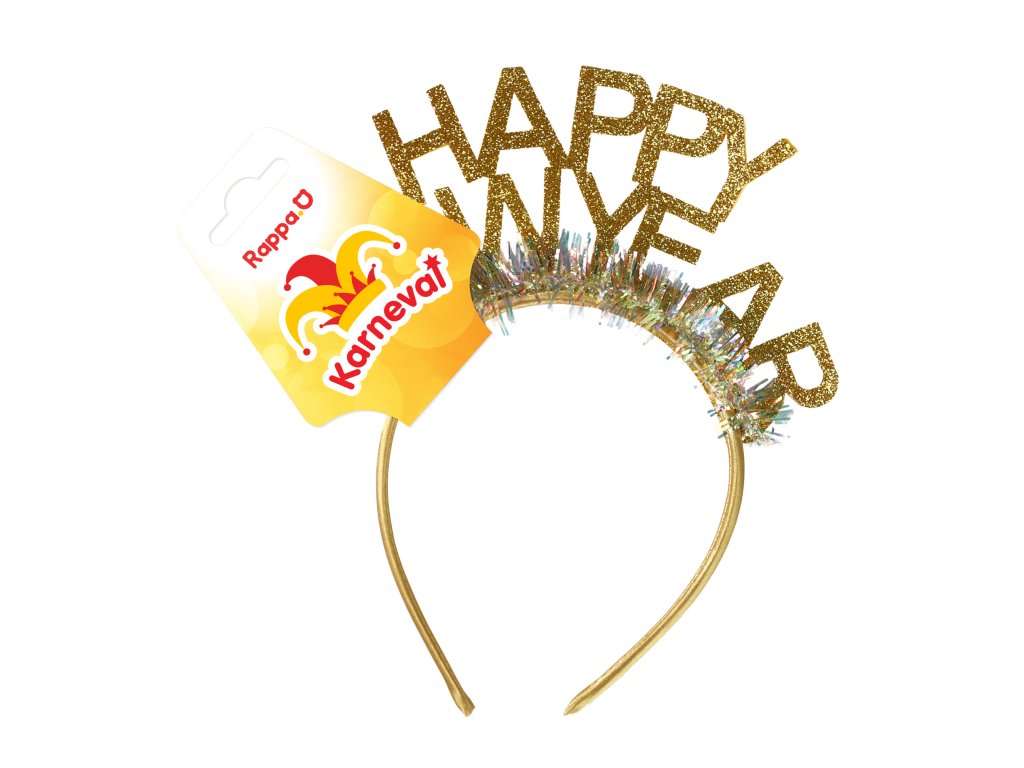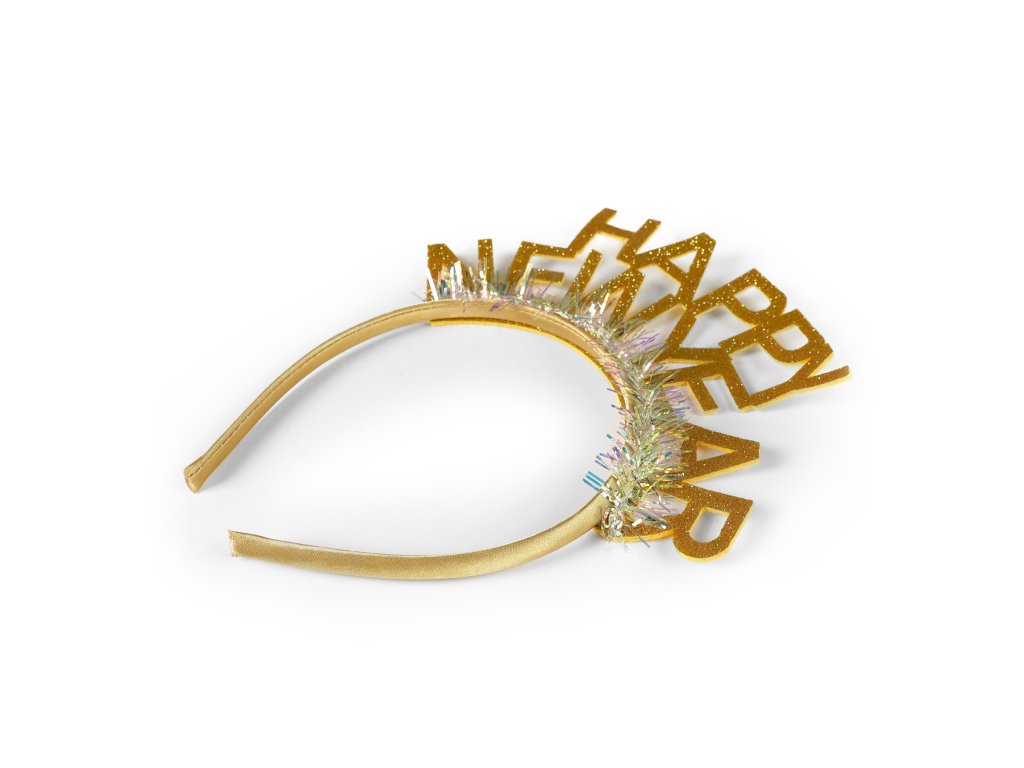 Oslnivá zlatá čelenka s třpytivým nápisem HAPPY NEW YEAR je senzačním doplňkem na oslavu nebo večírek při vítání Nového roku!