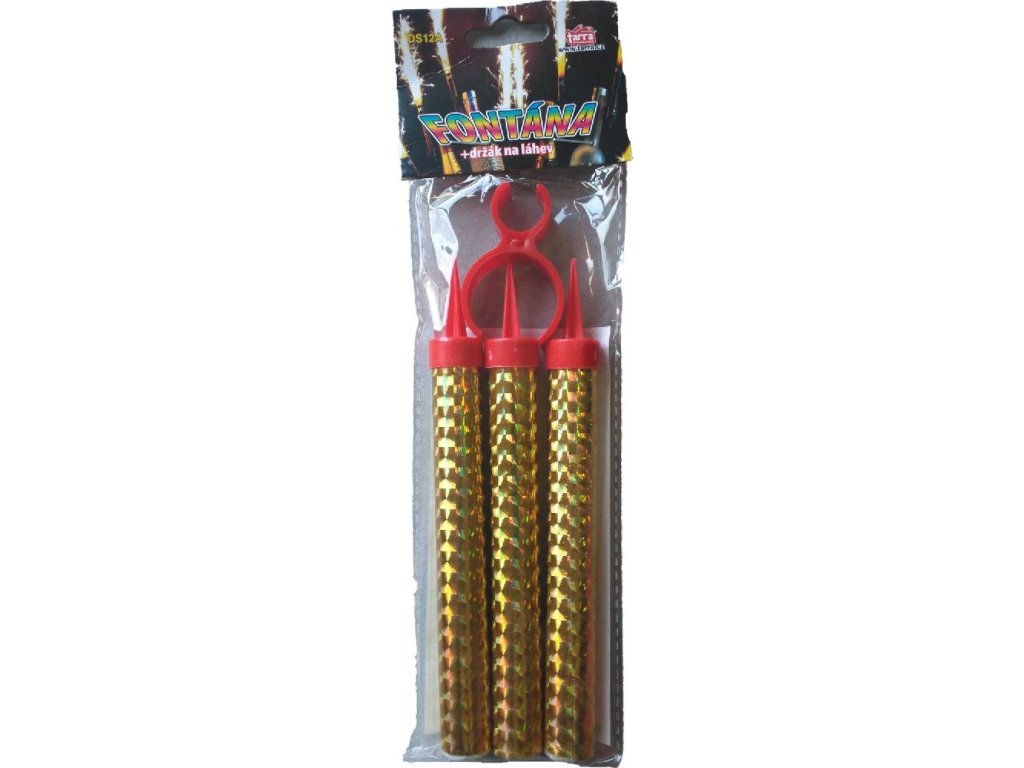 Fontána párty zlatá s držákem na láhev 40 sek 12 cm 3 ks