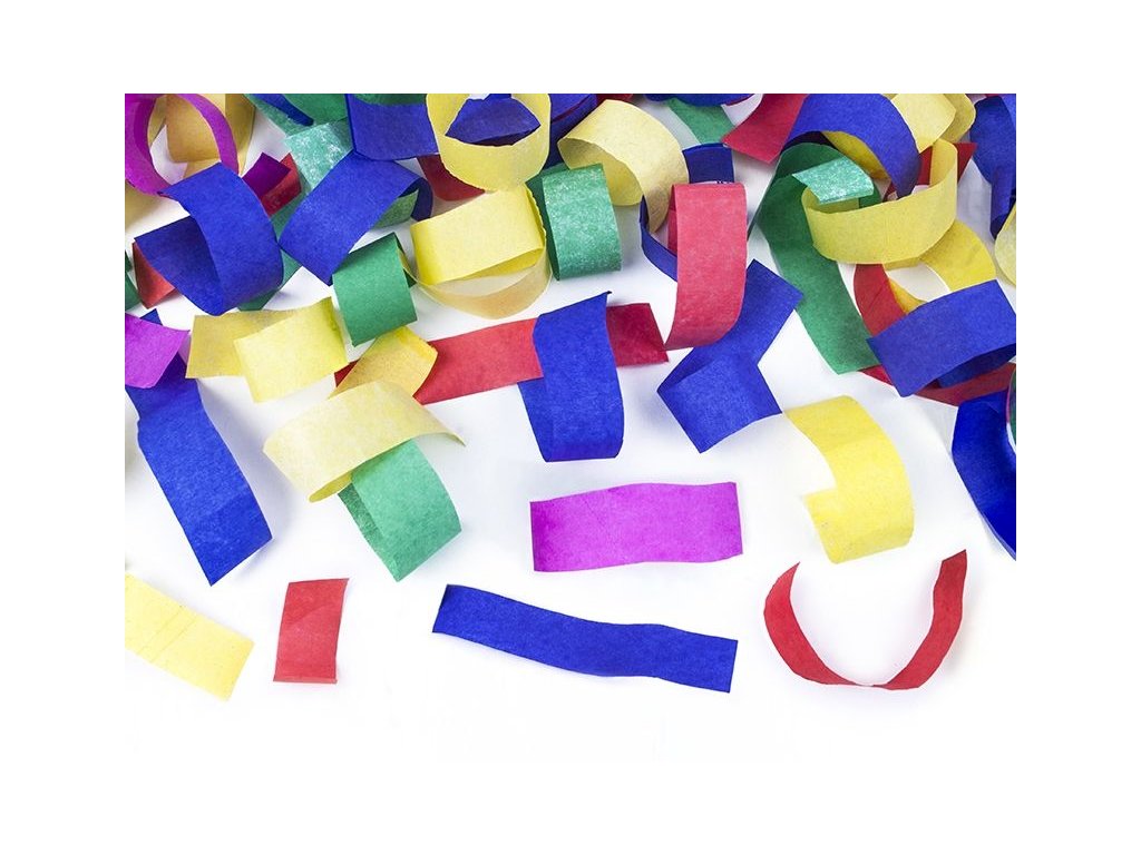 Konfety 20 cm, barevné papírové proužky. Konfety jsou uloženy ve válcovité tubě. Drží se v ruce a ovládají se mechanickým pootočením tubusu. Po vystřelení vyletí barevné papírové proužky do výšky 5 až 8 metrů a rozptýlí se do okolí. Iniciace stlačený vzduch. Tubus kov. Manipulace pootočení. Max délka odpálení 8 m. Bezpečnost konfety lze použít ve venkovních i vnitřních prostorách. Bezpečná vzdálenost přihlížejících diváků od tuby konfet je 10 metrů.
