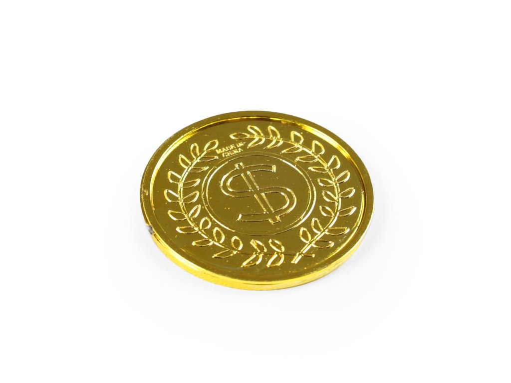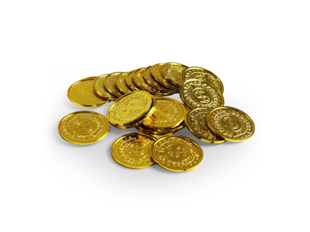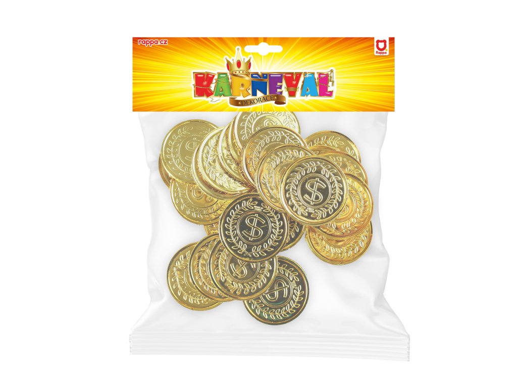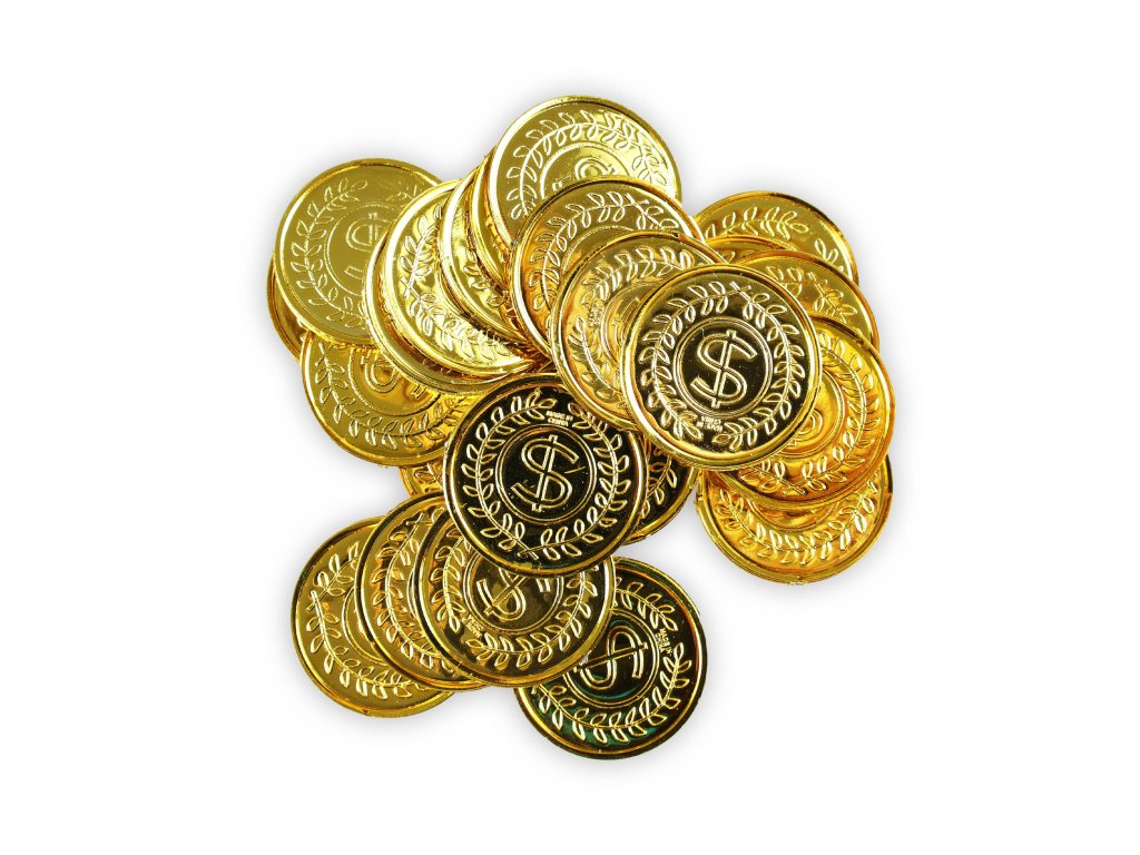 Senzační mince ve zlaté barvě! Tyto parádní kousky jsou vyrobeny z plastu. Balení obsahuje cca 24 mincí. Mince má průměr 3,4 cm.