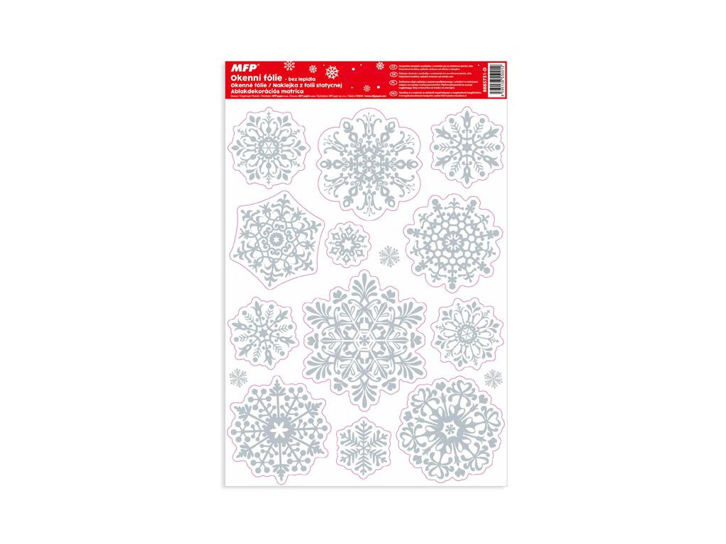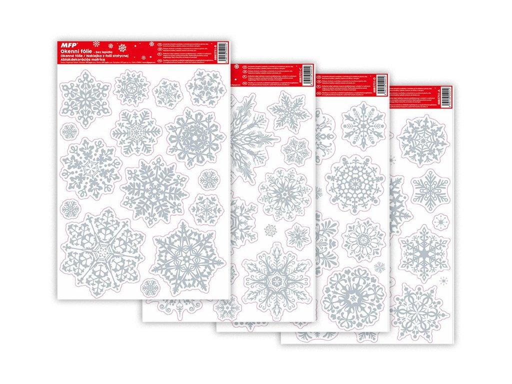 Vánoční okenní fólie s motivem sněhových bílých vloček s glitrem. Vyzdobte si okno těmito krásnými samolepkami. Vytvoří Vám kouzelnou vánoční atmosféru u Vás doma. Jsou vhodné na jakékoli hladké plochy, například sklo, výlohy, zrcadla nebo kachličky. Čisté, bez lepidla a opakovaně použitelné.1. Sloupněte z podložky obrázek a umístěte na čisté, případně navlhčené sklo stranou, která byla na podložce. 2. Obrázek elektrostaticky přilne.3. Folie se snadno sloupne a dá se přemístit.Dodáváme v mixu po 4 ks dle skladové zásoby.