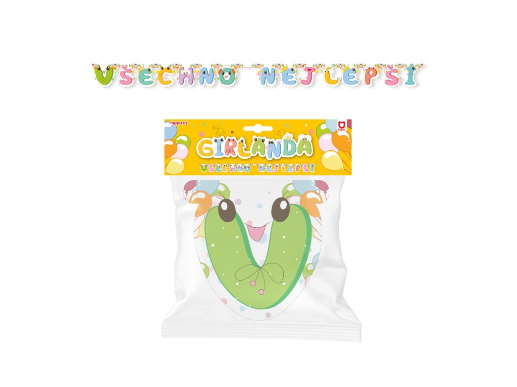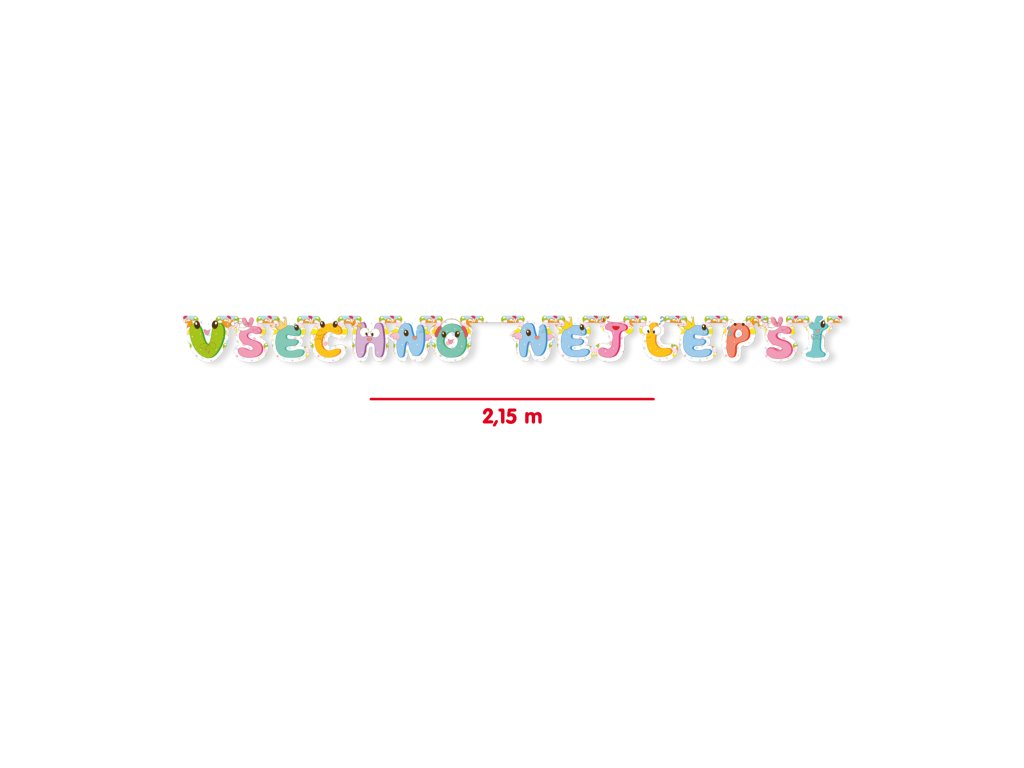Super tip na oslavu - girlanda Všechno nejlepší! Stačí roztáhnout a pověsit. S touto parádní girlandou bude tvoje výzdoba na párty nepřehlédnutelná. Délka cca 215 cm.