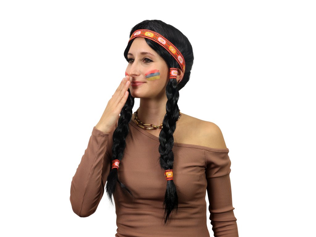 Úchvatná karnevalová dámská paruka ve stylu indiánské Ribany je určena pro dospělé. Paruka je přizdobena stylovou čelenkou a gumičkami. S touto senzační parukou si užijete spoustu zábavy. Staňte se hvězdou karnevalového večírku!
