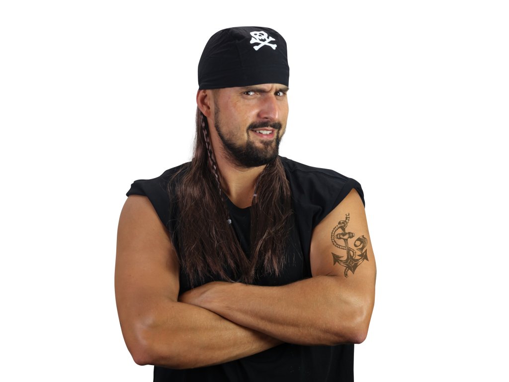 Stylová pirátská karnevalová paruka s šátkem je určena pro všechny, kdo milují karnevaly a párty!