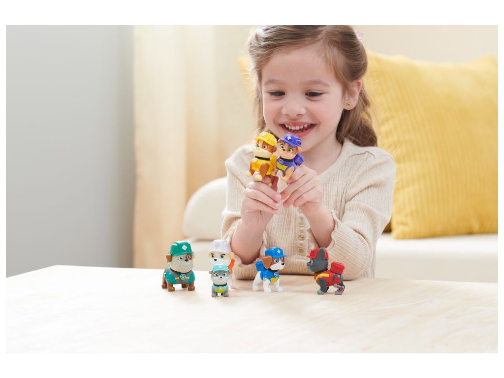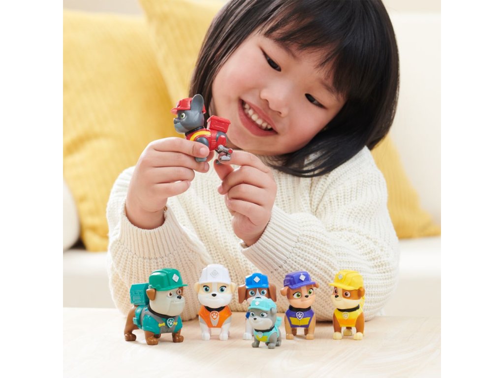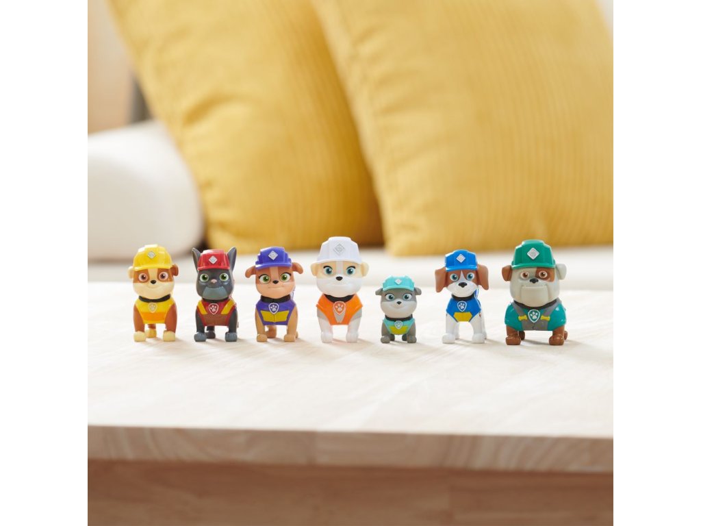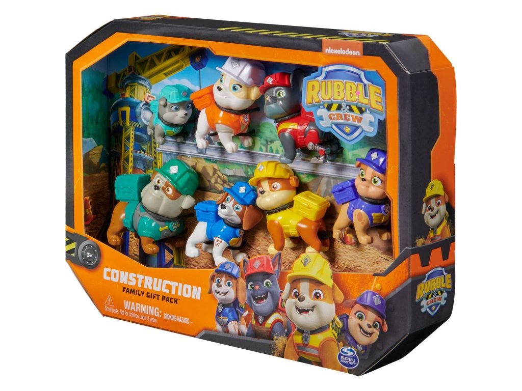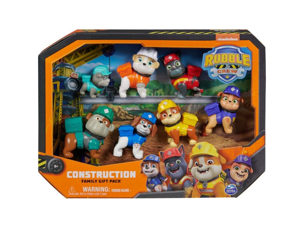 Připravte se na pořádnou stavbu se svým oblíbeným štěnětem Rubblem a jeho smečkou psích konstruktérů! Tato úžasná sada je nejrychlejší způsob, jak shromáždit všechna vaše oblíbená štěňata, která znáte ze seriálu Rubble a jeho parta – obsahuje Rubbla, Wheelera, Mixe, Chargera, Motor, tetu Crane a dědu Gravela! Každá z figurek měří přes 5 cm na výšku a je oblečena v oficiálních uniformách Rubbla a jeho party. Děti si zamilují hru se svými oblíbenými štěňátky, při níž zapojí fantazii a spojí síly se svými rodiči, aby společně uskutečnili stavební projekty ze seriálu a poté je rozšířily o vlastní nápady! Ještě více zábavy ze světa Rubbla a jeho party vám zajistí stavební náklaďák, figurky, sady s kinetickým pískem Build-it nebo sada s Jeřábem Bark Yard spolu se sadou Rubblova dílna, které vám umožní vybudovat vlastní staveniště přímo u vás doma (prodávají se zvlášť)! Přiveďte seriál Rubble a jeho parta k životu pomocí dárkového balení figurek Rubble a jeho parta!