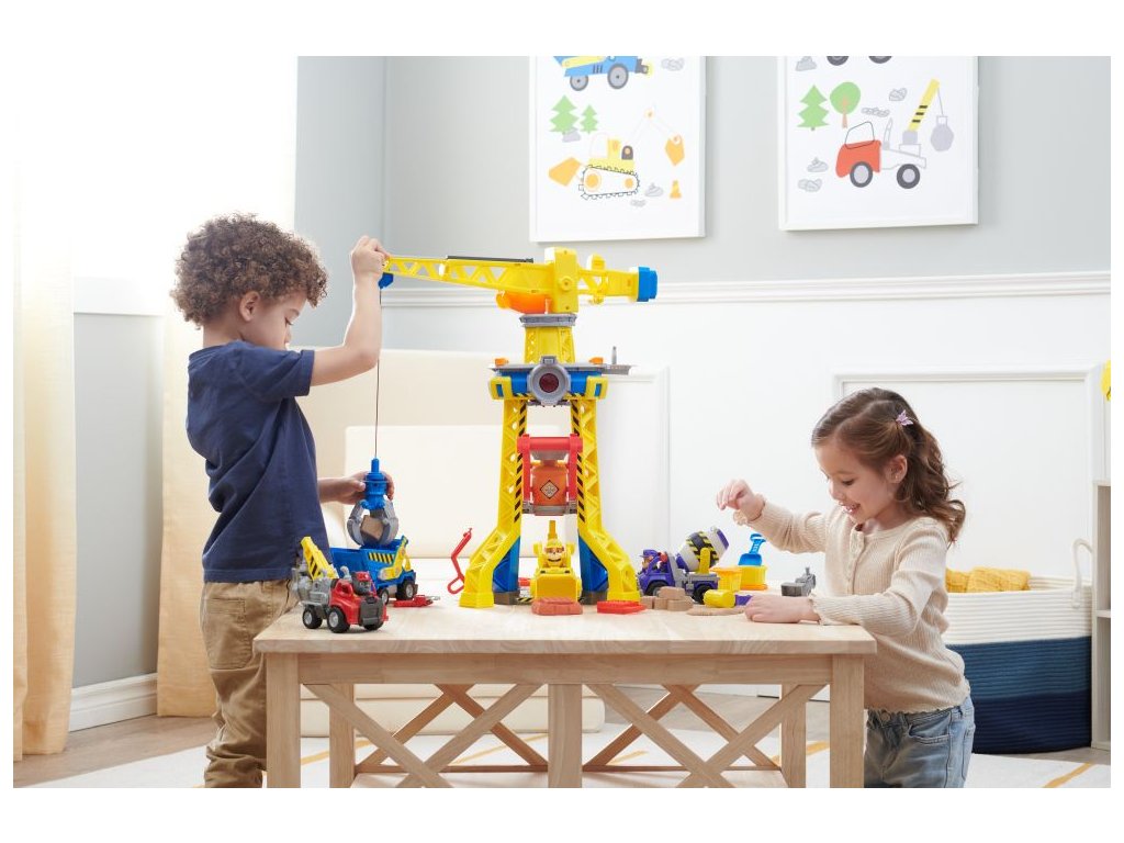 Rubble válí ve svém zbrusu novém stavebním buldozeru Rubble a jeho parta! Tento buldozer s kolečky, pohyblivou lžící a funkčním bagrem je nutností pro všechny fanoušky seriálu Tlapková patrola, kteří milují stavění a budování! Děti si zamilují hru se svými oblíbenými štěňátky, při níž zapojí fantazii a spojí síly se svými rodiči, aby společně uskutečnili stavební projekty ze seriálu a poté je rozšířili o vlastní nápady! Pro ještě větší zábavu se stavebními hračkami zkuste posbírat všechny stavební vozidla Rubble a jeho parta, plyšové hračky a herní sady s figurkami a kinetickým pískem Build-It (prodávají se zvlášť)! Zažijte non-stop stavební dobrodružství se všemi svými oblíbenými štěňaty! Senzorické a hračky a stavebnice Rubble a jeho parta jsou navrženy tak, aby poskytly dětem a rodičům příležitost stavět, hrát si a učit se společně! Tyto figurky a hračky jsou fantastickým dárkem pro děti, které milují stavění a které ještě stále rozvíjejí své jemné motorické dovednosti a představivost! Přiveďte seriál Rubble a jeho parta k životu pomocí Rubblova buldozeru!
