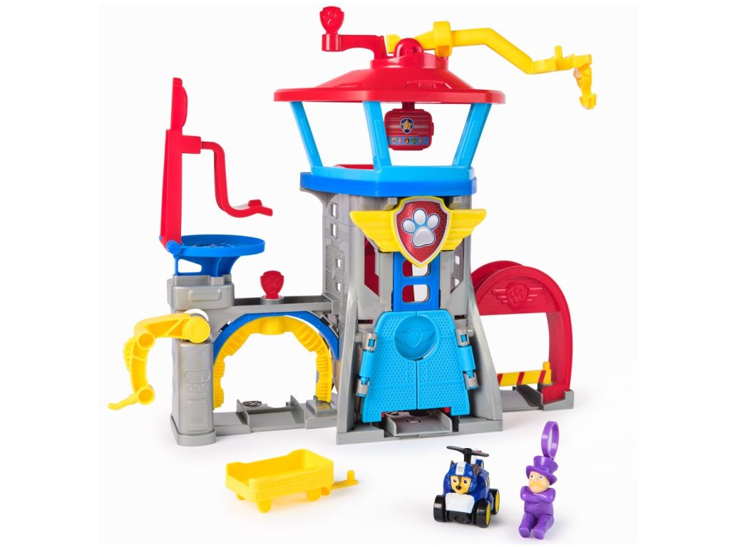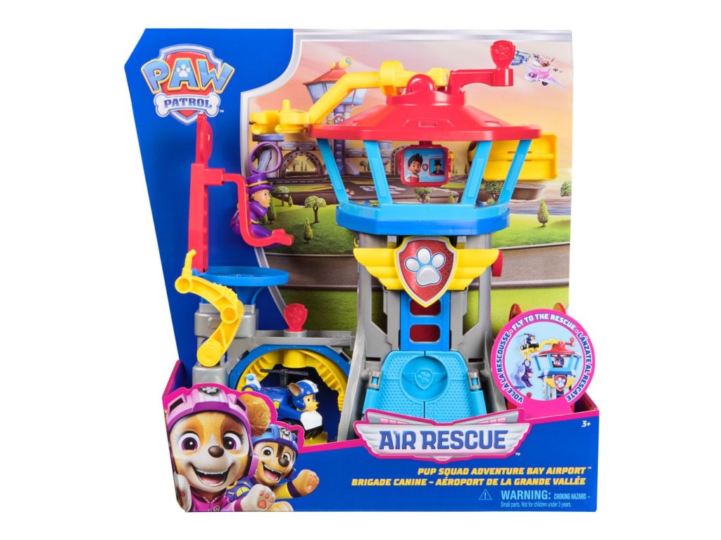 Vytvářej napínavá dobrodružství s hrací sadou Letiště Adventure Bay! Tento herní set měří přes 30 cm a nabízí více než 7 herních ploch k prozkoumání a Chaseovo závodní auto s motivem Air Rescue! Když je čas vyrazit do akce, zamiřte do velitelského centra a podívejte se na monitor s misemi! Humdinger má opět potíže, uvízl na radarové věži! Nebojte se, Chase je případu na stopě! Připojte své autíčko z Tlapkové patroly k rotujícímu letovému rameni a otáčejte jím, abyste Humdingera zachytili, než bude příliš pozdě! Po vaší záchraně se zastavte v myčce aut, pak zamiřte na čerpací stanici natankovat, než naskočíte do odpalovače vozidel pro další bleskovou záchranu! Hračky z Tlapkové patroly pro předškoláky a hračky pro batolata jsou dárky pro děti, které podporují nápaditost při hraní a zlepšují jemnou motoriku. Hrdinové z Tlapkové patroly a jejich autíčka vám umožní znovu prožít vaše oblíbené okamžiky z různých dobrodružství Tlapkové patroly, jako jsou Mocné tlapky a Tlapková patrola ve filmu, nebo se vydat na nová dobrodružství (prodávají se zvlášť). Užijte si dlouhé hodiny zábavy a vydejte se na dobrodružství inspirované seriálem Tlapková patrola s kompletními sadami akčních štěňat a leteckých záchranářů, které zahrnují vozidla Tlapkové patroly, akční figurky a hračky pro batolata!