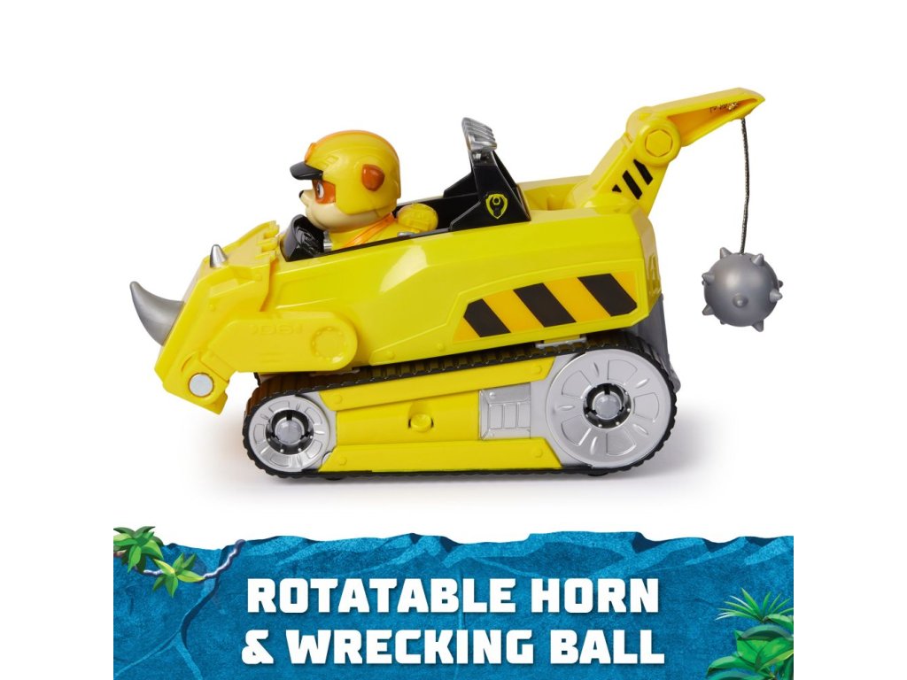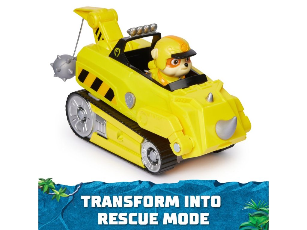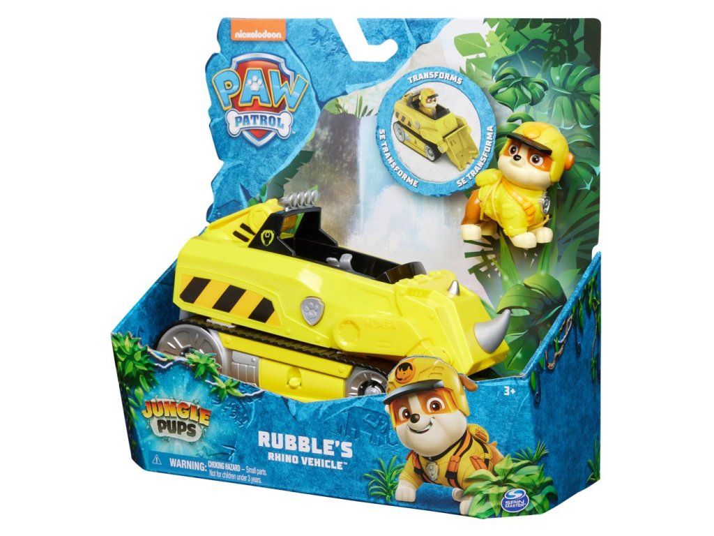 Rubblovo vozidlo se dokáže transformovat do záchranného režimu! Zmáčkněte na jeho vozidle odznak Tlapkové patroly, abyste otočili lopatou a odhalili tak roh nosorožce. Pak otevřete přihrádku v zadní části vozidla a zvedněte rameno jeřábu, abyste použili demoliční kouli a dokončili transformaci! Použijte demoliční kouli a nosorožčí roh k likvidaci všech překážek a zachraňte situaci! Pro ještě zábavnější a napínavější mise inspirované seriálem Tlapková patrola posbírejte všechny hračky: Tlapky z džungle a Tlapková patrola ve velkofilmu, jako například úžasné velitelství letadlové lodi a všechny speciální edice hraček, figurek, hracích sad Tlapkové patroly pro dívky a chlapce: Mocné Tlapky, Vodní Tlapky a velká vozidla (každé se prodává zvlášť). S předškolními hračkami Tlapkové patroly může dítě zapojit svou představivost a rozvíjet své motorické dovednosti hraním si, zatímco prožívají oblíbené momenty ze seriálů. Užijte si nekonečná tlapkózní dobrodružství s Rubble a jeho nosorožčím vozidlem Tlapek z džungle!