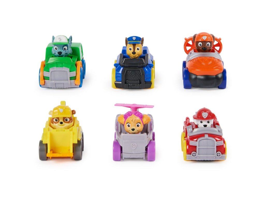 Přispěchej na pomoc s dárkovou sadou Tlapková patrola: Tlapková závodní autíčka! Každé závodní autíčko Tlapkové patroly měří 6,35 cm na délku a 5 cm na výšku, takže dokonale padnou do dlaně nebo do kapsy, což z nich dělá hračky ideální velikosti, které si děti mohou vzít kamkoli s sebou! Všechna štěňata z Tlapkové patroly na sobě mají své autentické tlapkové uniformy a uši mají sklopené dozadu, takže vypadají, jako by běžela ve velké rychlosti, přesně jako ve filmu! Tato exkluzivní sada je tím nejlepším a nejrychlejším způsobem, jak posbírat všechna Tlapková závodní autíčka najednou – obsahuje autíčko Chase, Marshalla, Skye, Rubbla, Rockyho a Zumy! Hračky s tematikou Tlapkové patroly pro chlapce a dívky podporují nápaditou hru a zlepšují jemnou motoriku, proto jsou skvělými dárky pro všechny fanoušky pořadu. Hrdinové z Tlapkové patroly a jejich autíčka vám umožní znovu prožít vaše oblíbené okamžiky z různých dobrodružství Tlapkové patroly, jako jsou Mocná štěňata a Tlapková patrola ve velkofilmu, nebo se vydat na zcela nová dobrodružství (prodávají se zvlášť). Užijte si dlouhé hodiny zábavy a vydejte se na dobrodružství inspirované seriálem Tlapková patrola s celým týmem záchranářů, který obsahuje autíčka Tlapkové patroly, akční figurky a zcela nové velitelství v podobě Tlapkové věže.